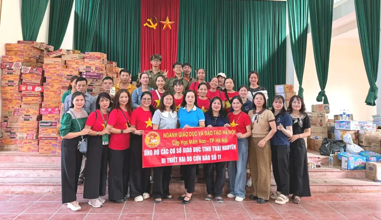 Đoàn công tác Sở GD&ĐT Hà Nội trao quà hỗ trợ cho các cơ sở giáo dục thuộc phường Linh Sơn, tỉnh Thái Nguyên - nơi chịu ảnh hưởng nặng nề của cơn bão số 11.