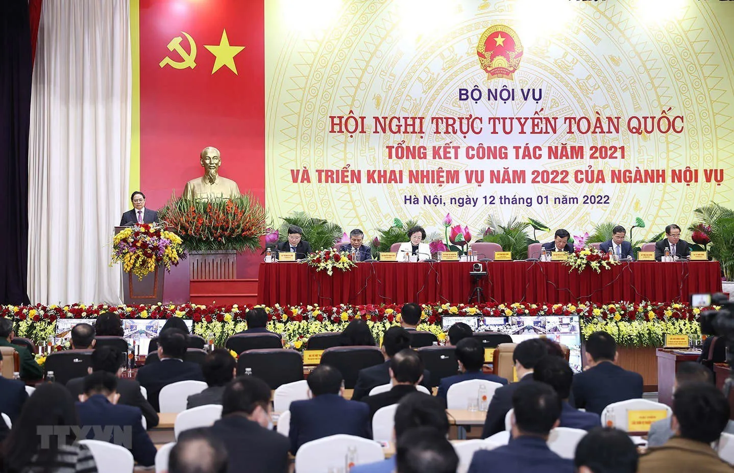 Kinhtedothi -Sáng nay, 12/1, Bộ Nội vụ tổ chức Hội nghị trực tuyến toàn quốc tổng kết công tác năm 2021, triển khai nhiệm vụ năm 2022. Thủ tướng Chính phủ Phạm Minh Chính dự, chỉ đạo tại Hội nghị.