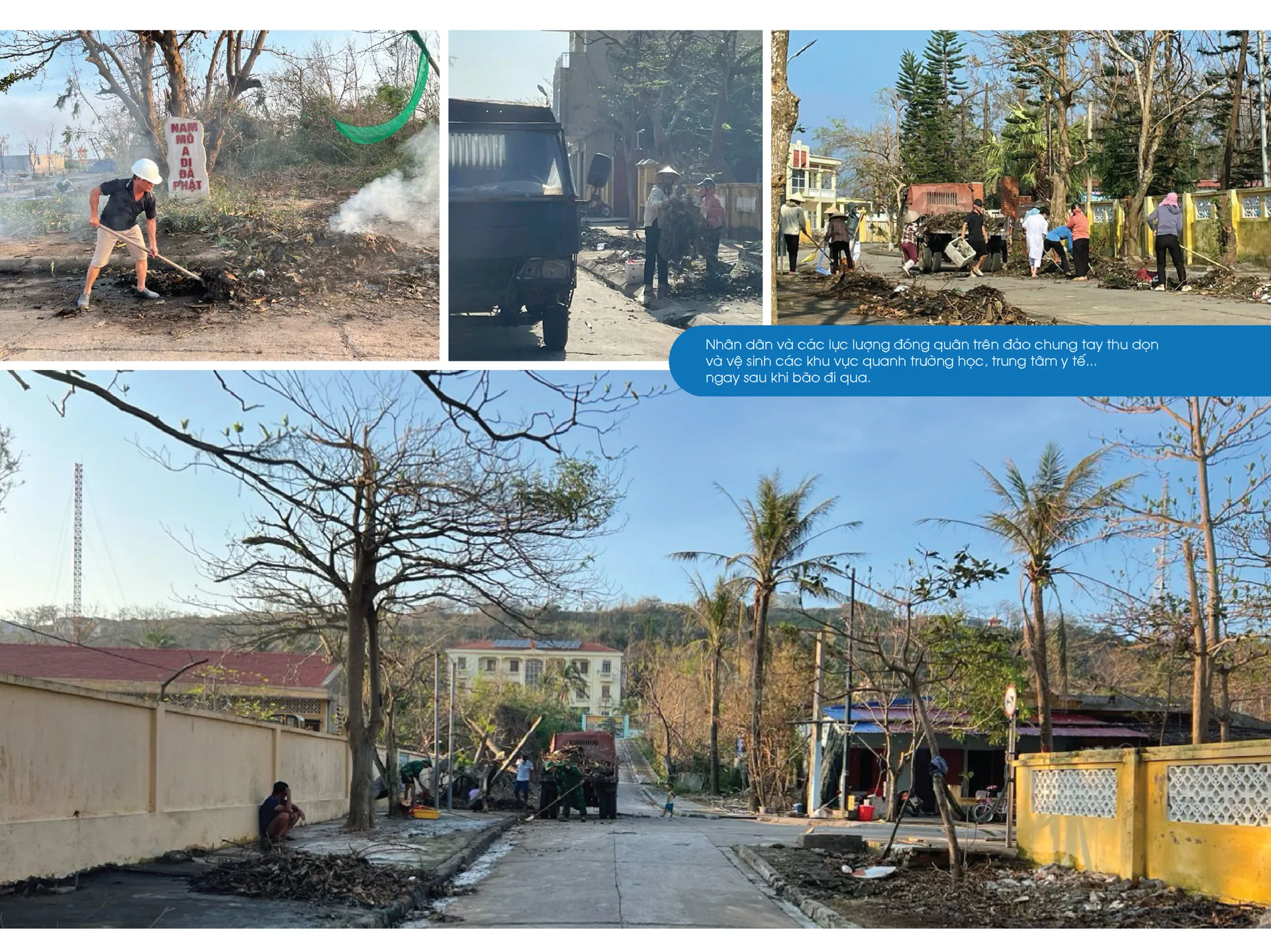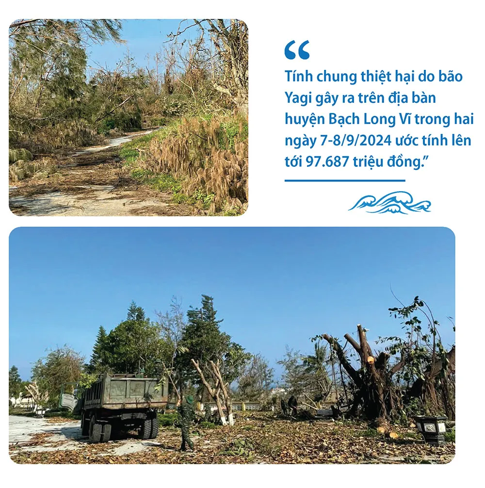 Theo Bí thư Huyện ủy Bạch Long Vĩ Bùi Trung Tiến, ngay sau khi bão Yagi đi qua, huyện đảo đã huy động Nhân dân và các lực lượng đóng quân trên địa bàn thu dọn và vệ sinh các khu vực quanh trường học, trung tâm y tế, các tuyến đường... Làm tốt công tác bảo đảm an ninh trật tự nhất là khu vực trên bờ đường dạo âu cảng, nơi tập trung phương tiện của người dân đưa lên bờ tránh bão, khẩn trương thống kê thiệt hại sau bão. Cán bộ lãnh đạo huyện trực tiếp rà soát, kiểm tra, thăm hỏi, động viên, hỗ trợ bà con khắc phục hậu quả, ổn định cuộc sống...