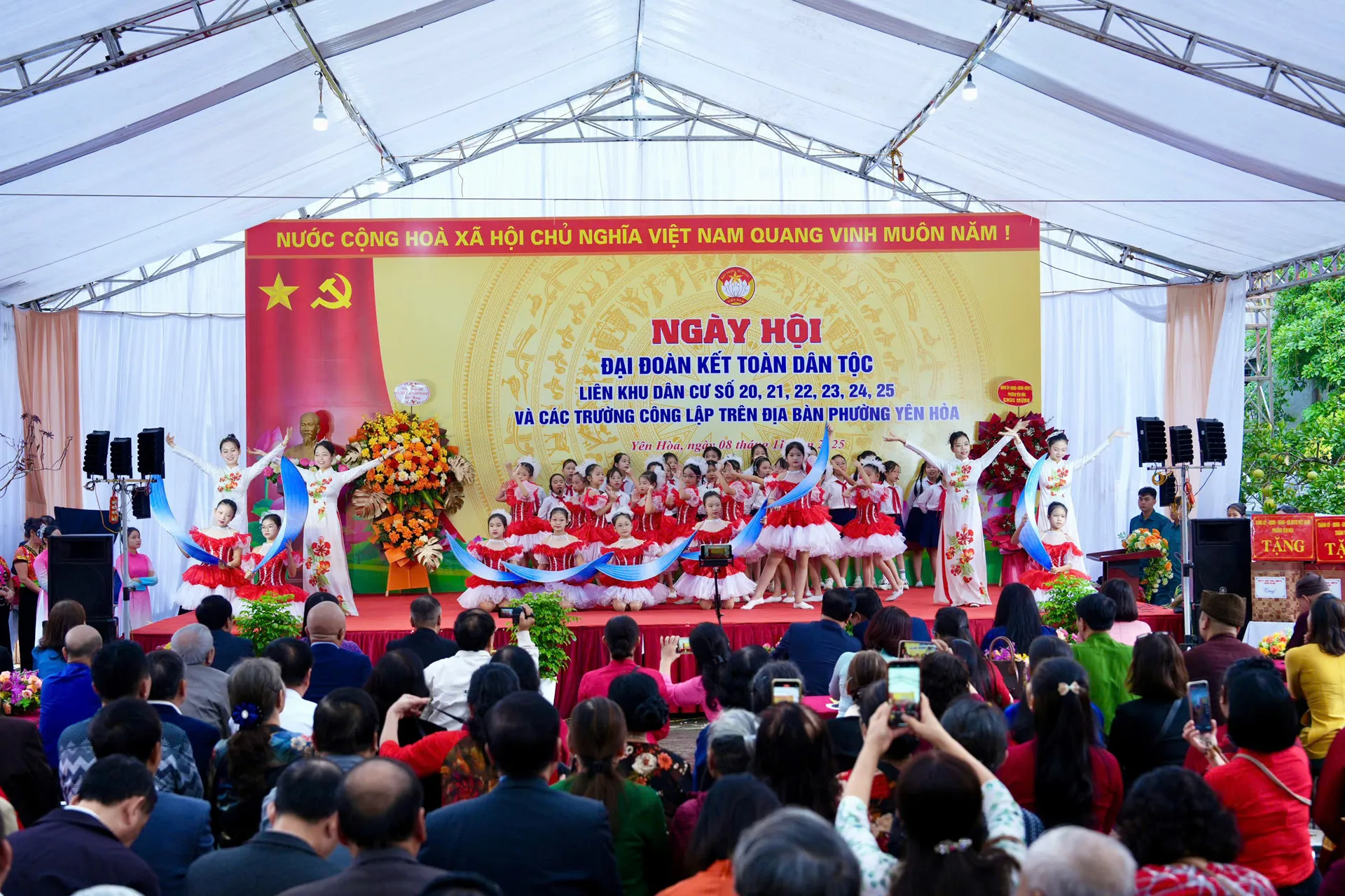 Kinhtedothi - Ngày 8/11, Ủy ban MTTQ Việt Nam phường Yên Hòa tổ chức Ngày hội Đại đoàn kết toàn dân tộc liên khu dân cư số 20, 21, 22, 23, 24, 25 và các trường công lập trên địa bàn, nhân kỷ niệm 95 năm Ngày truyền thống Mặt trận Tổ quốc Việt Nam (18/11/1930 - 18/11/2025).