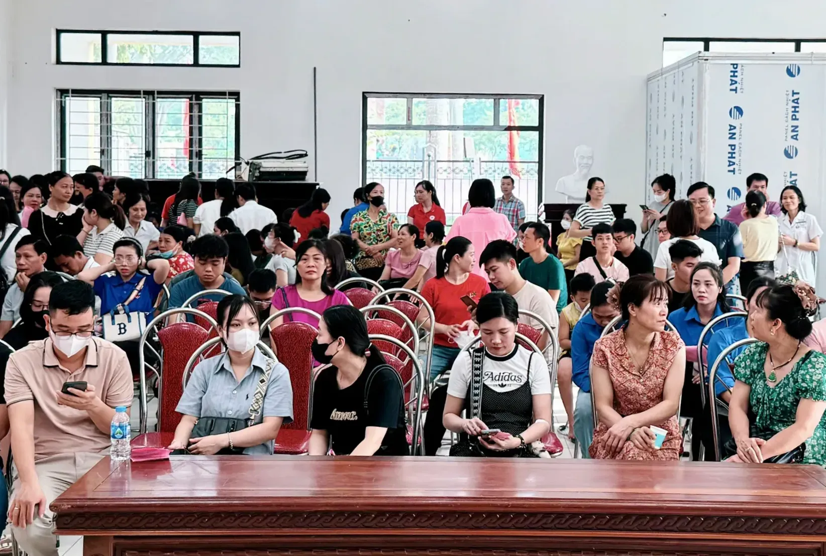 Buổi hiến máu tình nguyện tại xã Nam Phù thu hút hàng trăm cán bộ, người dân tham gia.