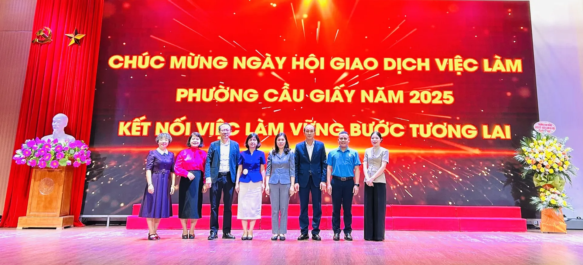 Ngày hội Tư vấn và giao dịch việc làm phường Cầu Giấy năm 2025 có sự tham dự của Phó Giám đốc Sở Nội vụ Hà Nội Nguyễn Tây Nam; Giám đốc Trung tâm Dịch vụ việc làm Hà Nội Tạ Văn Thảo. Đại biểu phường Cầu Giấy có: Thành ủy viên - Bí thư Đảng ủy - Chủ tịch HĐND phường Cầu Giấy Trần Thị Phương Hoa; Ủy viên thường vụ - Phó Chủ tịch UBND phường Cầu Giấy Nguyễn Thị Thu Hà.