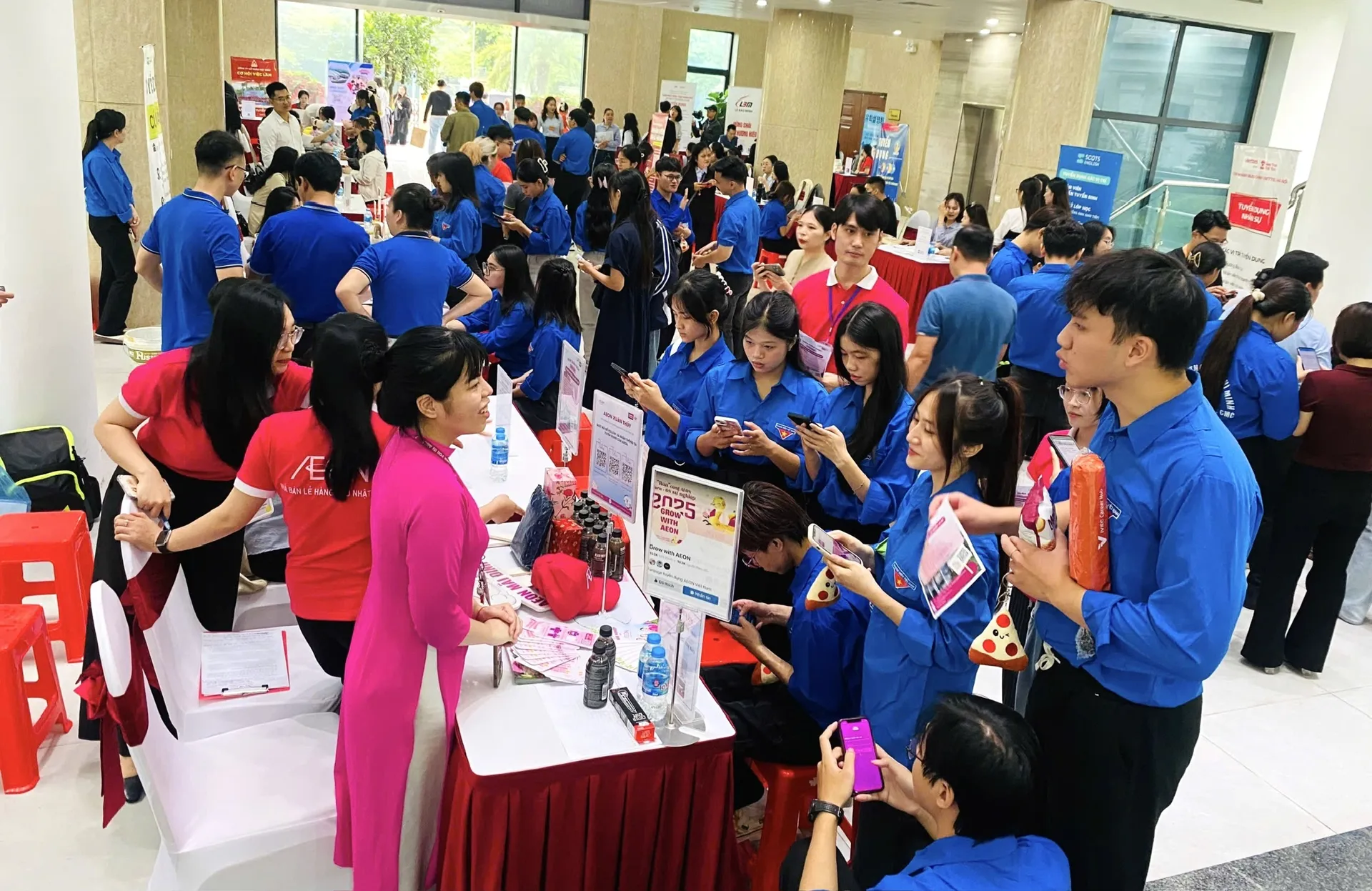 Ngày hội Tư vấn và giao dịch việc làm phường Cầu Giấy năm 2025 thu hút hàng trăm người lao động và sinh viên, thanh niên đến tìm hiểu thông tin việc làm và ứng tuyển. Ảnh: Trần Oanh.