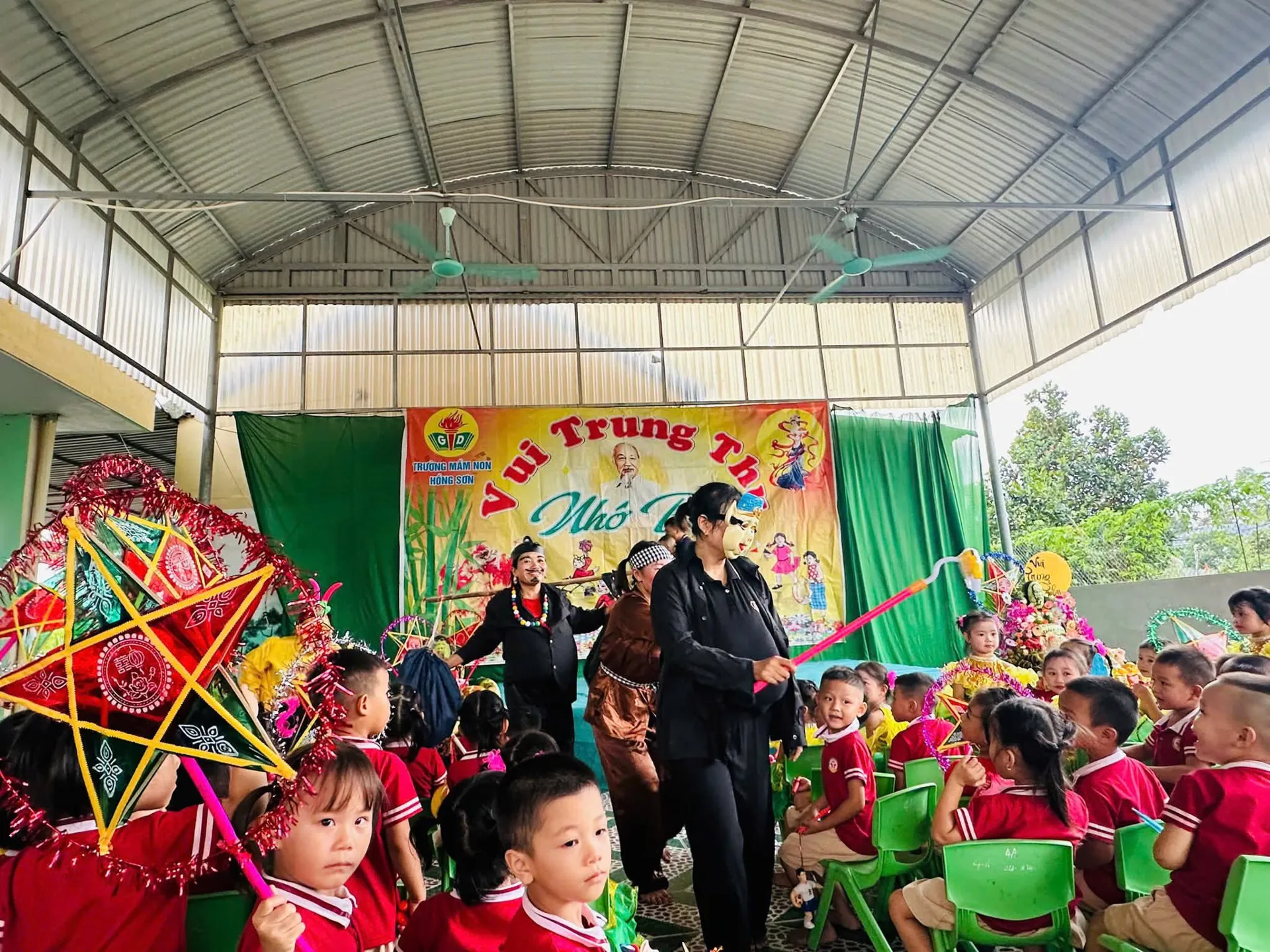 Các em nhỏ ở xã Hạnh Lâm được tổ chức đêm hội trăng rằm, rước đèn ông sao, vui Tết Trung thu.