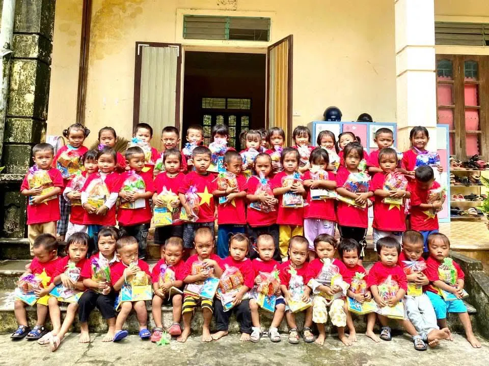 Các em nhỏ ở Trường Mầm non xã Mai Sơn vui tươi đón nhận những món quà Trung thu ý nghĩa từ các mạnh thường quân gửi tặng, trao cả những sẻ chia, yêu thương.