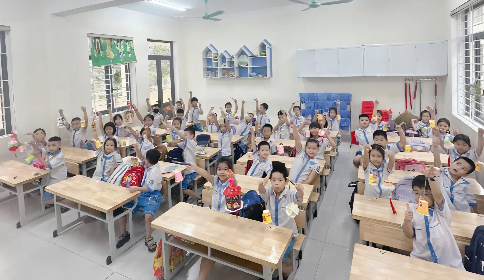 Các em nhỏ lớp 3G Trường Tiểu học Hưng Dũng I được tổ chức làm các món đồ chơi dịp Tết Trung thu, trước đêm hội trăng rằm.