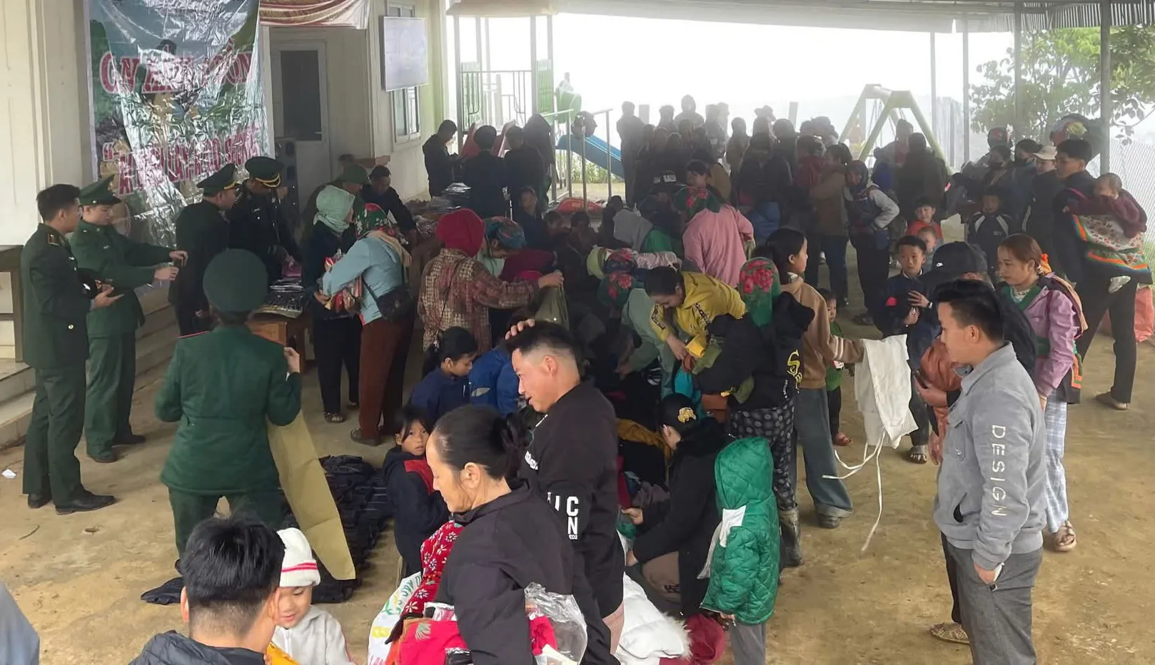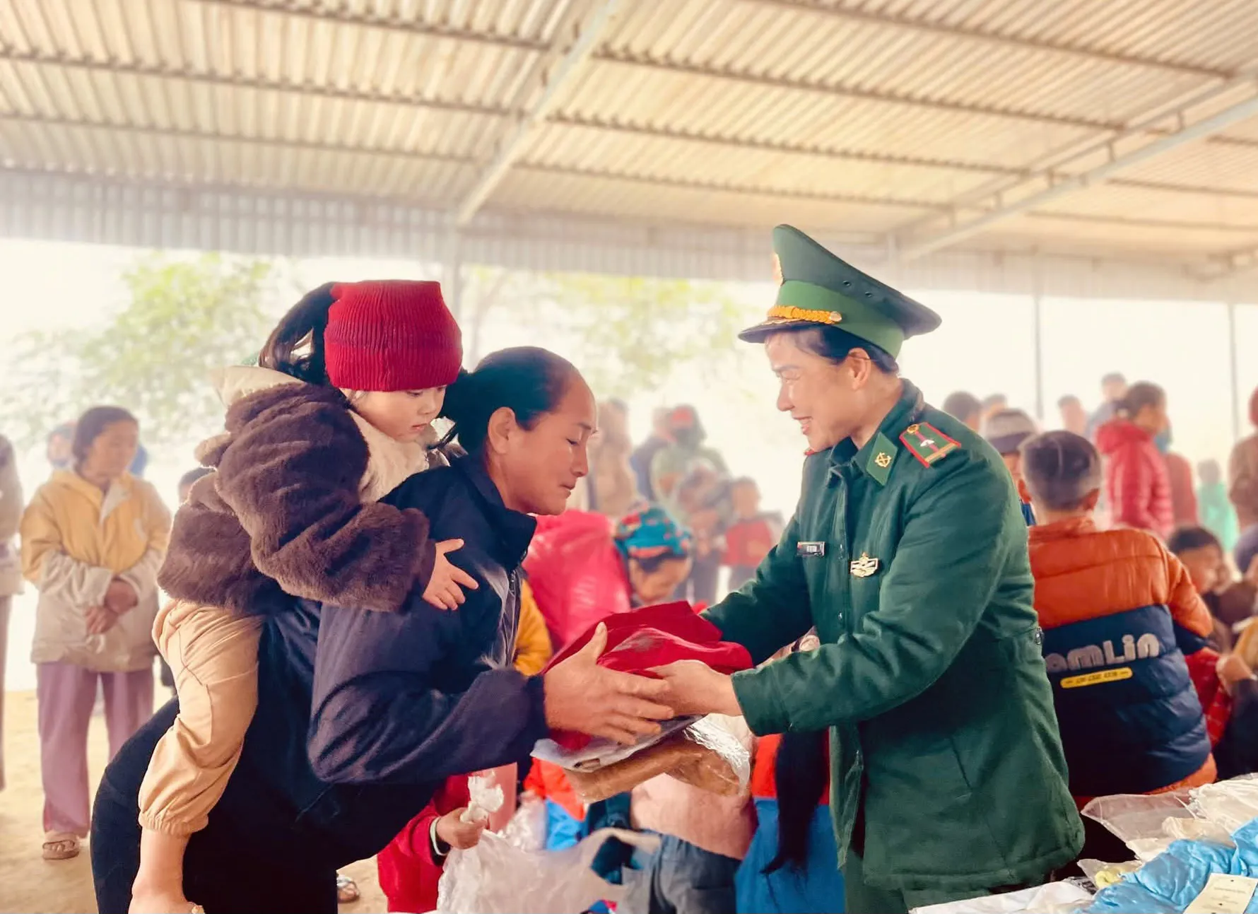 Đồn Biên phòng Nậm Càn tổ chức “Gian hàng không đồng, ai cần đến lấy, ai có sẻ chia” tại bản Na Cáng, xã Na Ngoi, chia sẻ những cái chăn, quần áo ấm...để bà con, các em nhỏ nơi đây luôn ấm áp giữa cái lạnh như cắt da, cắt thịt.