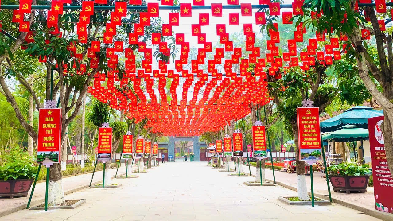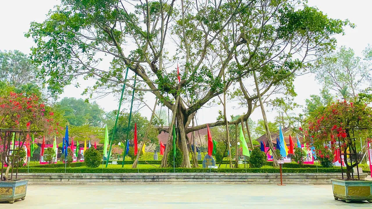Khu di tích Kim Liên trang trí rực rỡ cờ hoa chờ đón du khách về dâng hương, tưởng niệm trong những ngày nghỉ đầu năm Tết Dương lịch.