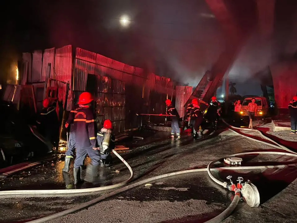 Lực lượng chức năng kịp thời dập tắt đám cháy tại kho chứa hàng thuộc phường Vinh Hưng.