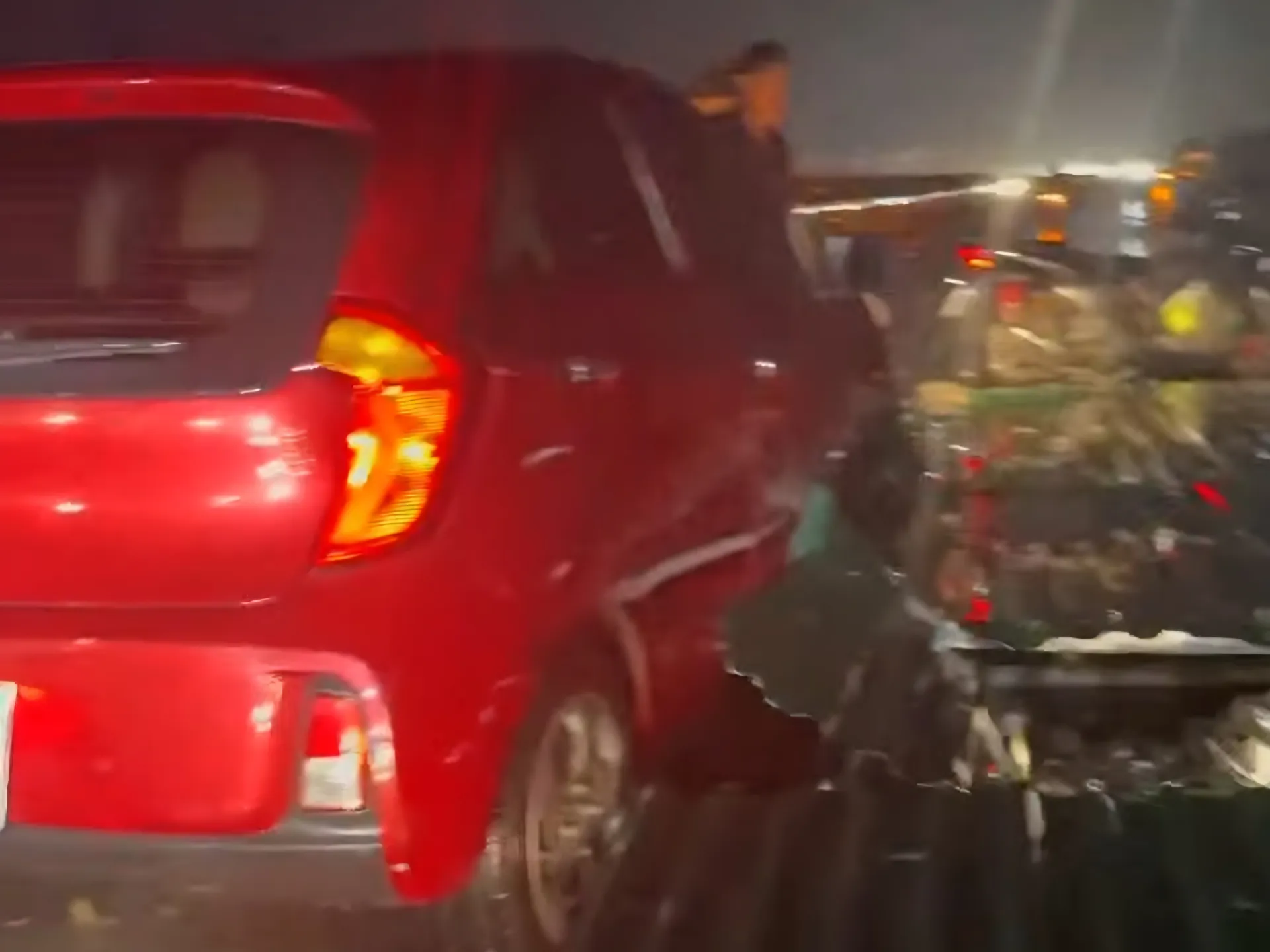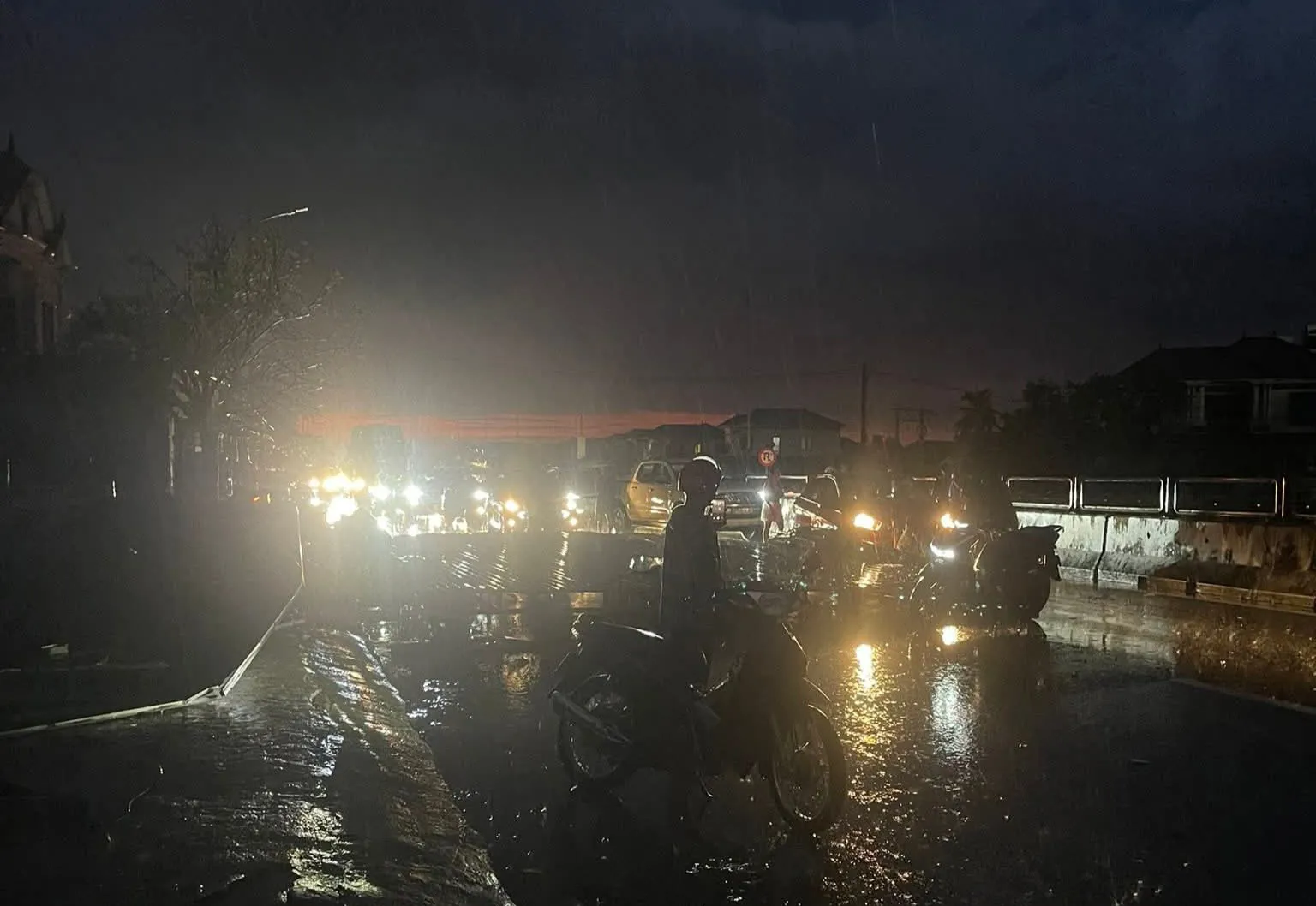 Lốc xoáy kéo theo mái tôn bay chắn ngang đường, đè lên 1 xe ô tô khiến đường quốc lộ 1A ách tắc vào chiều tối 4/10.