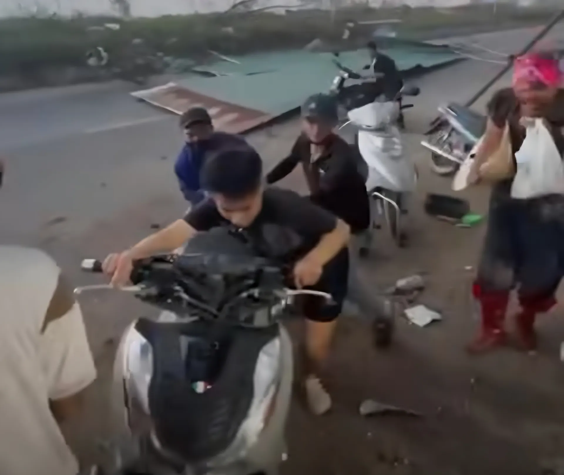 Một số người đi đường ở xã Vạn An hoảng hốt khi xảy ra trận lốc xoáy bất ngờ.