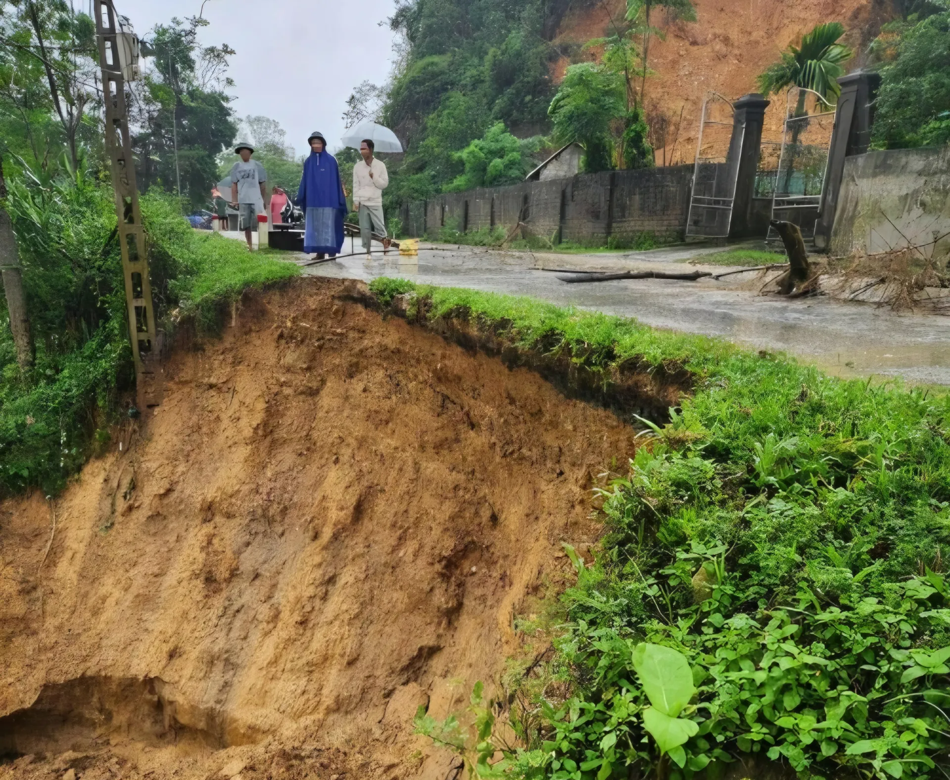 Sạt lở đường liên xã tại địa bàn xã Tri Lễ.