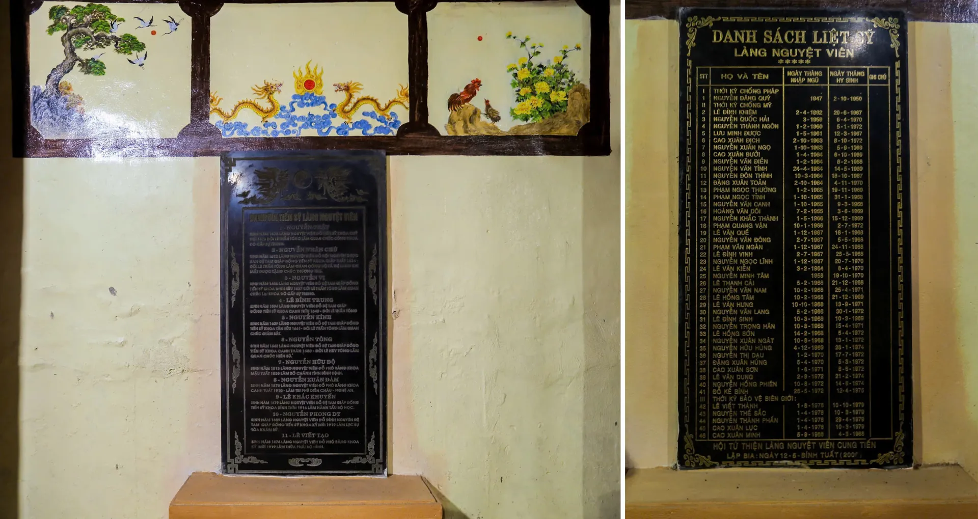 Bên trong Nghè Nguyệt Viên đặt 2 tấm bia đối xứng, một bia ghi danh 11 Tiến sĩ đỗ đạt cao của làng trong thời phong kiến, bia còn lại tưởng nhớ các liệt sĩ đã hy sinh trong các cuộc kháng chiến bảo vệ Tổ quốc.