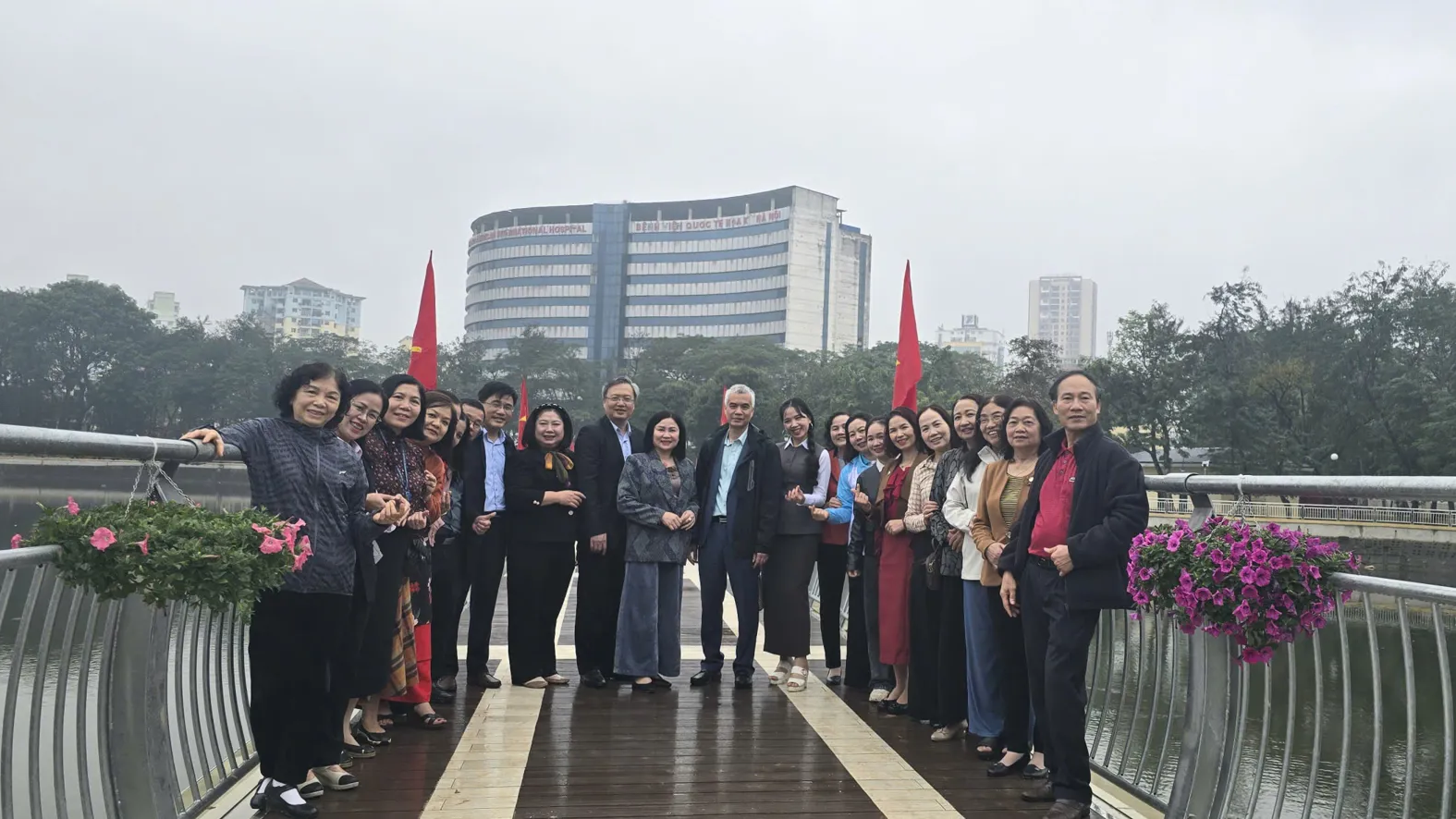 Các đại biểu chụp ảnh lưu niệm tại Công viên Nghĩa Đô - "lá phổi xanh" của phường Nghĩa Đô.