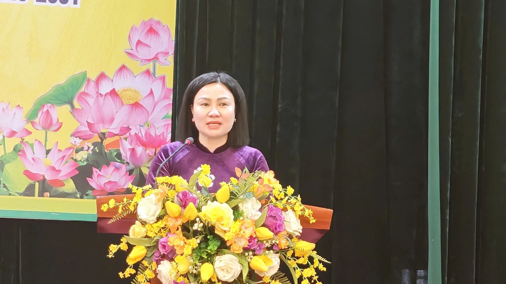 Phó Bí thư Thường trực Đảng ủy phường Nghĩa Đô Nguyễn Thị Thanh phát biểu chỉ đạo tại buổi lễ.