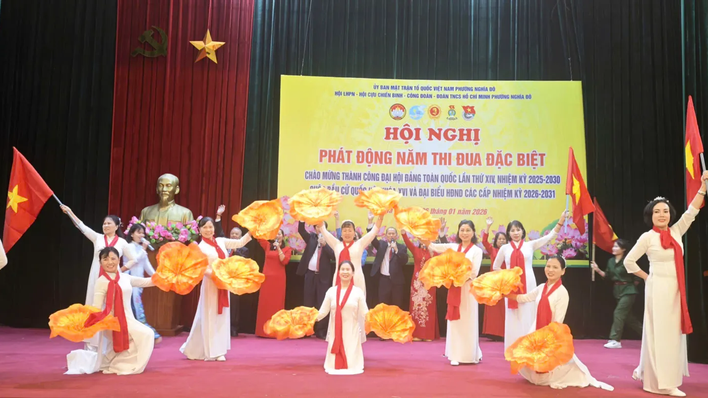 Kinhtedothi – Ngày 26/1, Ủy ban MTTQ Việt Nam phường Nghĩa Đô tổ chức Lễ phát động năm thi đua đặc biệt lập thành tích chào mừng thành công Đại hội Đảng toàn quốc lần thứ XIV, bầu cử đại biểu Quốc hội khóa XVI và đại biểu HĐND các cấp nhiệm kỳ 2026 – 2031; đồng thời biểu dương, khen thưởng các tập thể, cá nhân tiêu biểu trong công tác Mặt trận năm 2025.