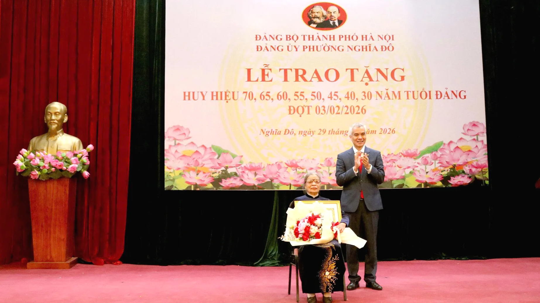 Kinhtedothi - Trong không khí phấn khởi mừng Đảng quang vinh tròn 96 năm, mừng Xuân mới 2026 và chào mừng thành công Đại hội đại biểu toàn quốc lần thứ XIV của Đảng, ngày 29/1, Đảng ủy phường Nghĩa Đô long trọng tổ chức Lễ trao tặng Huy hiệu Đảng đợt 3/2/2026.