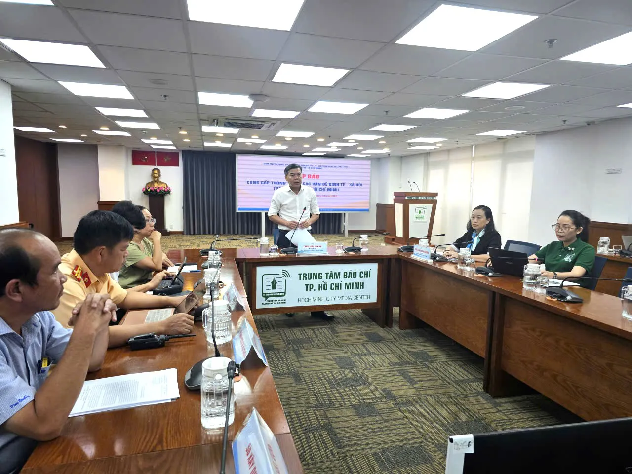 Phó trưởng Phòng Quản lý bảo trì và khai thác công trình giao thông Sở Xây dựng TP Hồ Chí Minh Nguyễn Kiên Giang trả lời nhiều câu hỏi của phóng viên tại buổi họp báo. Ảnh: Tân Tiến
