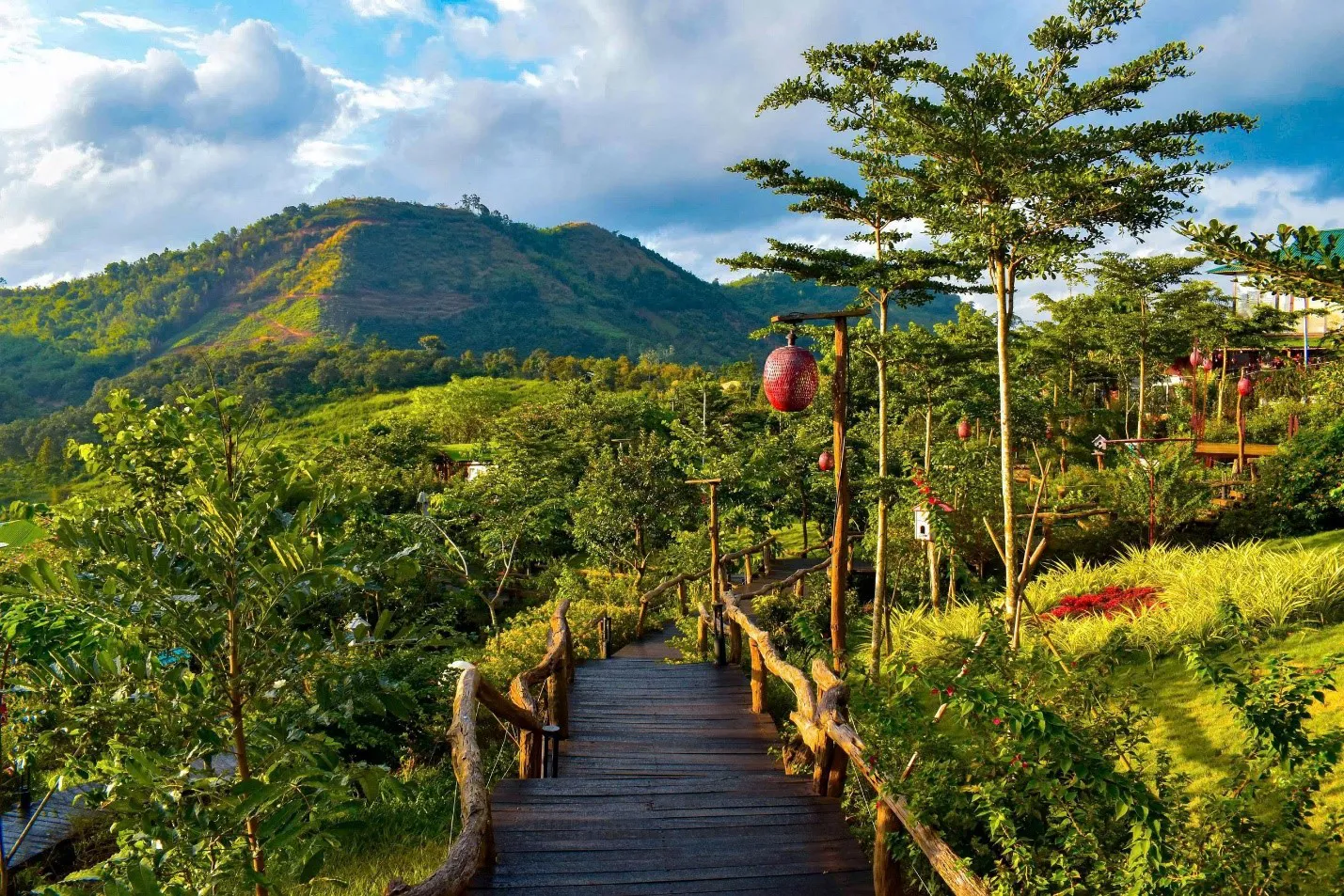 Khi lựa chọn nghỉ dưỡng tại Eva Village, du khách không chỉ được tận hưởng không gian thư giãn giữa thiên nhiên mà còn có cơ hội tham quan những khu vườn và nông trại xanh mát thuộc hệ sinh thái Eva. Tại đây, du khách được dạo bước giữa những nông trại cà phê, nông trại sầu riêng hoặc vườn rau sạch, vườn thảo dược trong lành, thân thiện với môi trường. Trải nghiệm gần gũi này mang đến cảm giác bình yên, giúp kết nối con người với thiên nhiên, đồng thời lan tỏa lối sống xanh, bền vững – một giá trị cốt lõi mà Eva Village luôn hướng đến trong hành trình nghỉ dưỡng và chăm sóc sức khỏe toàn diện.