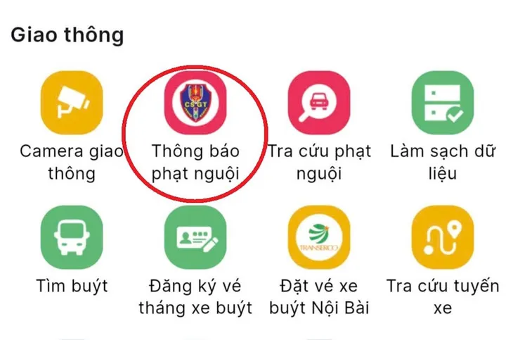 Người dân có thể vào mục “Giao thông - Thông báo phạt nguội” trên iHanoi theo dõi phạt nguội.