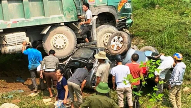Vụ va chạm kinh hoàng khiến cả hai phương tiện bị bắn văng sang lề đường; chiếc xe bán tải bị vò nát, biến dạng nghiêm trọng, phần đầu xe bẹp dúm, toàn bộ người ngồi trên xe bị mắc kẹt trong tình trạng bị thương rất nặng. Trong khi đó, chiếc xe tải cũng bị hư hỏng nhiều nơi.