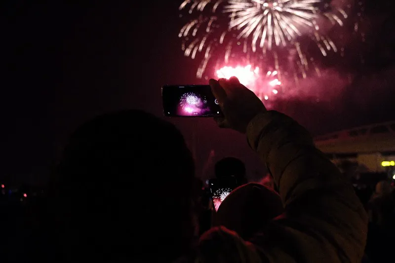 Tại điểm bắn pháo hoa Sân vận động Mỹ Đình, hàng nghìn người dân cũng mãn nhãn với những hình ảnh pháo hoa tuyệt đẹp...