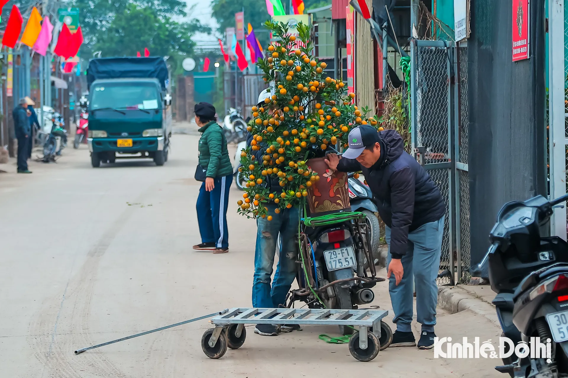 Từ sáng đến chiều, các nhà vườn quất liên tục đóng gói, vận chuyển cây giao cho khách đã đặt trước. Xe tải ra vào tấp nập trên các tuyến đường quanh Tứ Liên, tạo nên bức tranh nhộn nhịp rất riêng của những ngày cận Tết.
