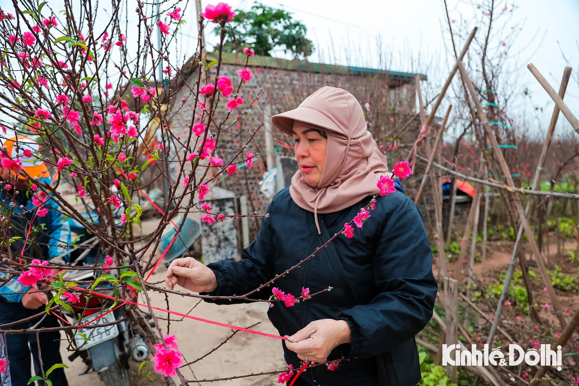 Song hành cùng không khí mua sắm là sự tất bật của các chủ vườn. Người tỉa tán, người chỉnh dáng, người cẩn thận buộc cành, che nụ để đào nở đúng dịp. Năm nay thời tiết khá thuận lợi, đào sinh trưởng tốt, nụ đều, hứa hẹn một mùa Tết trọn vẹn. Giá đào nhìn chung ổn định, dao động tùy theo dáng thế và độ tuổi của cây.