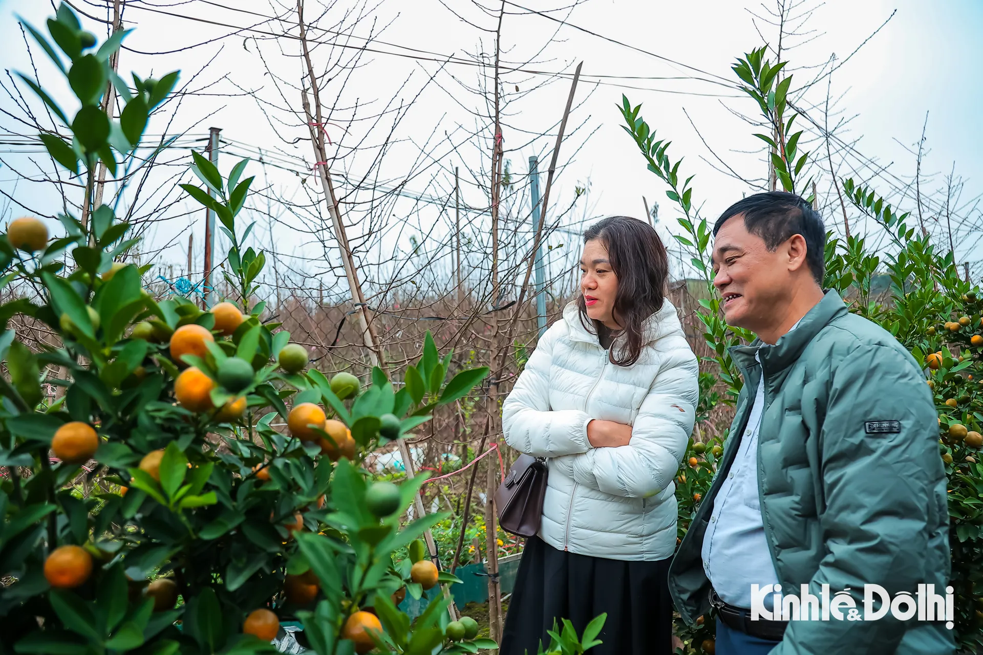 Không kém phần nhộn nhịp, làng quất Tứ Liên những ngày này cũng rộn ràng không khí mua bán. Các vườn quất vàng rực trải dài, cây nào cây nấy sai quả, lá xanh mướt, dáng tròn đầy tượng trưng cho sung túc, đủ đầy trong năm mới. Nhiều khách đến không chỉ mua quất chơi Tết mà còn đặt thuê quất phục vụ cơ quan, doanh nghiệp, nhà hàng trong dịp cao điểm.
