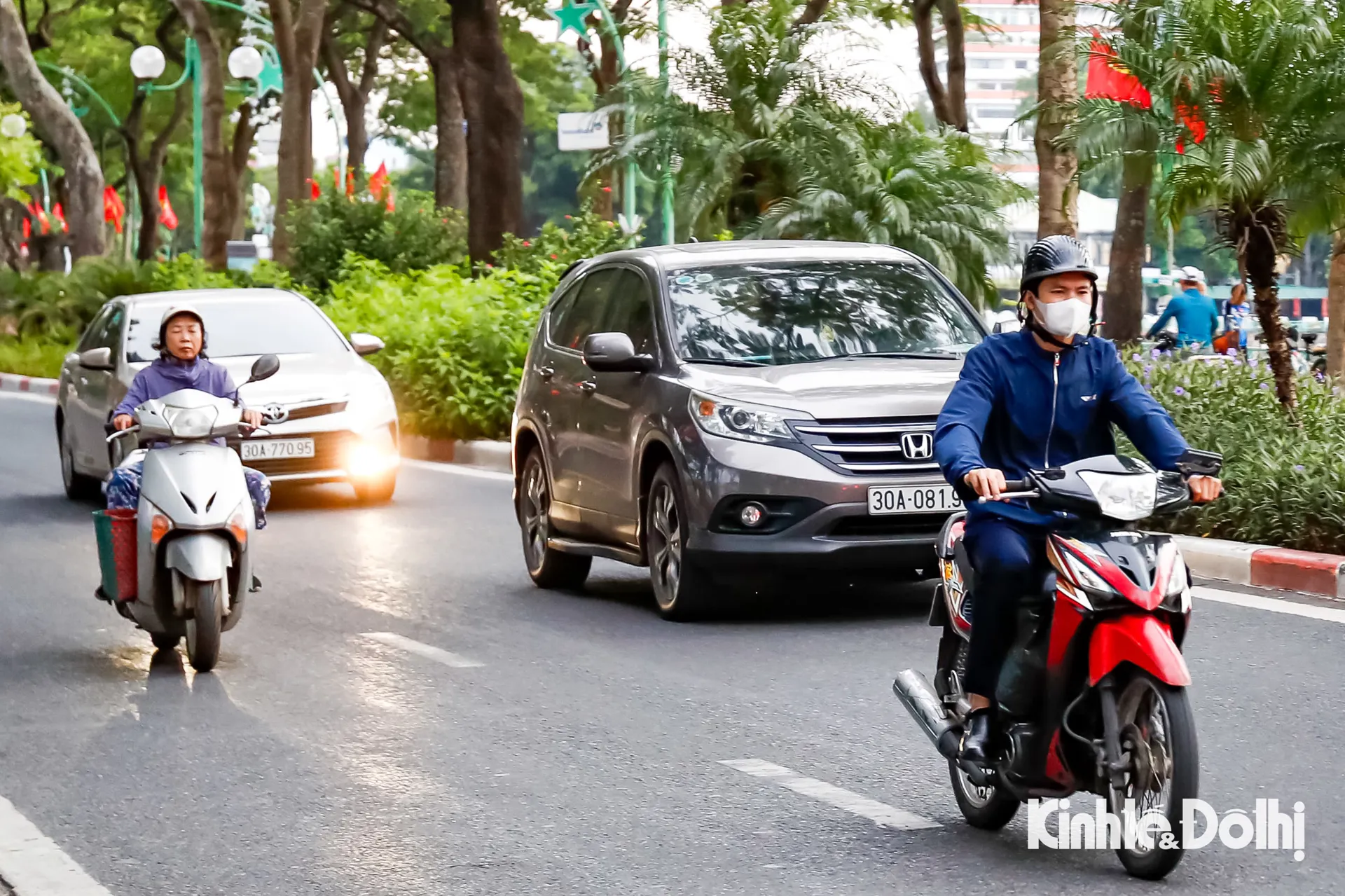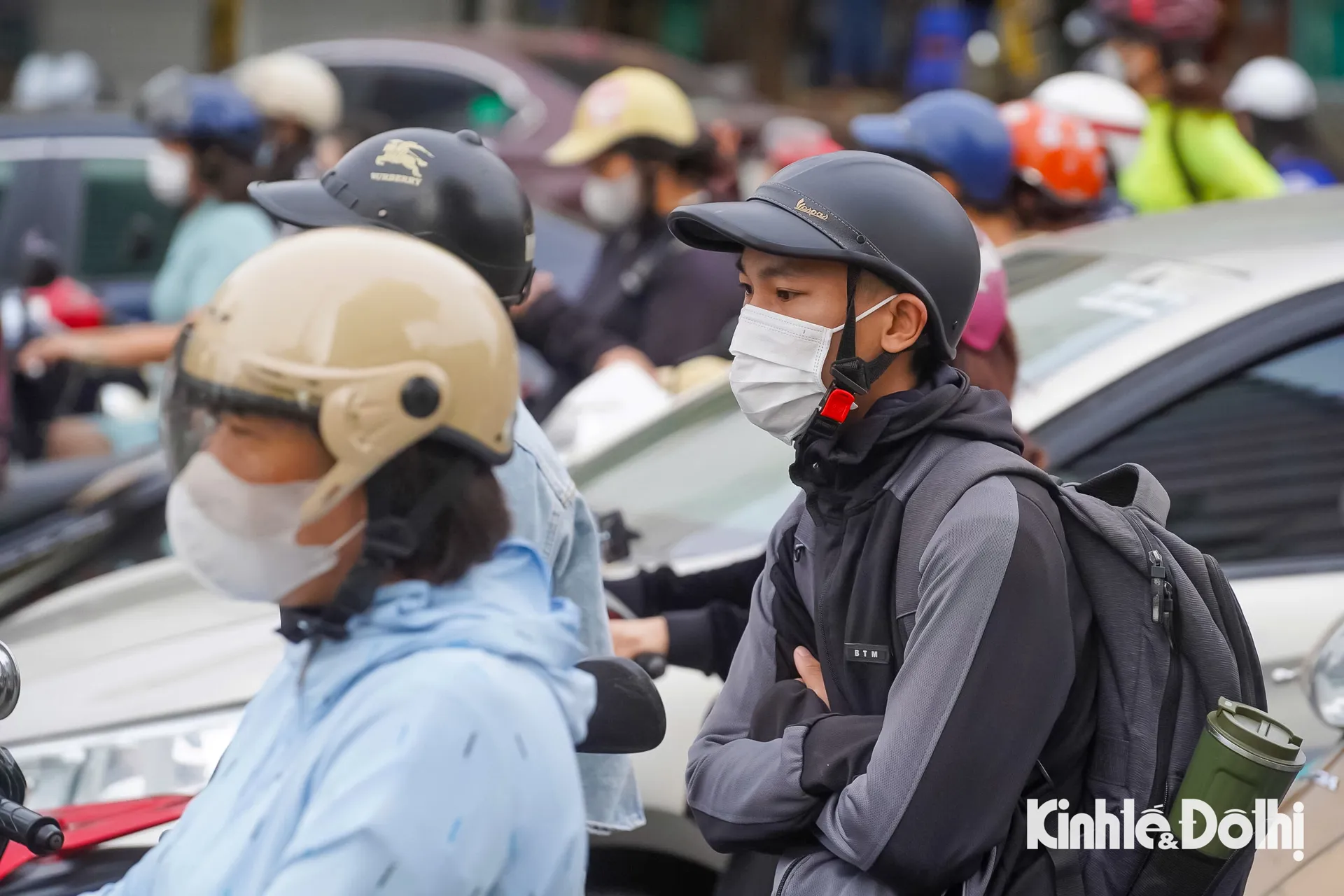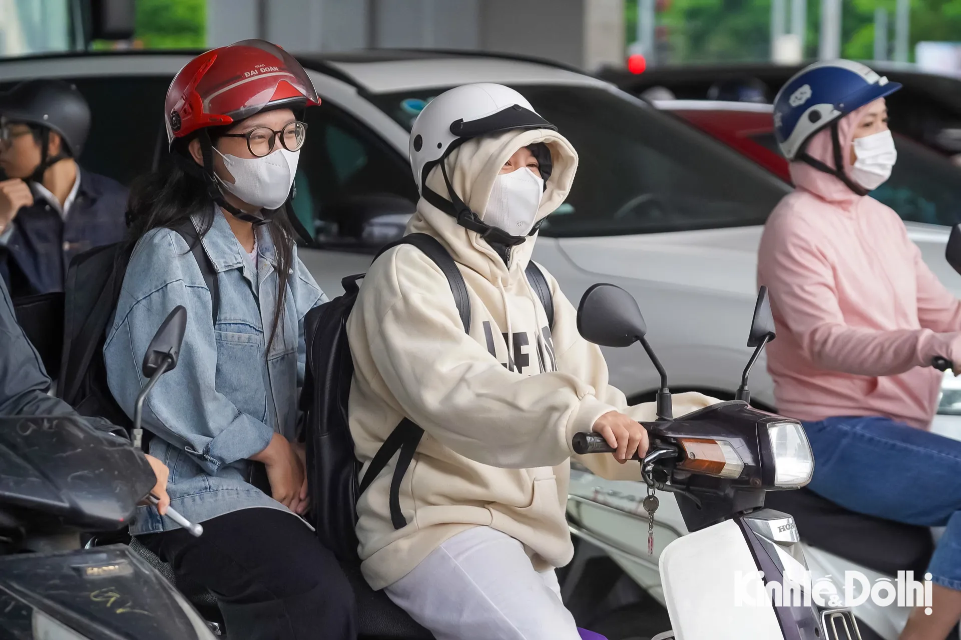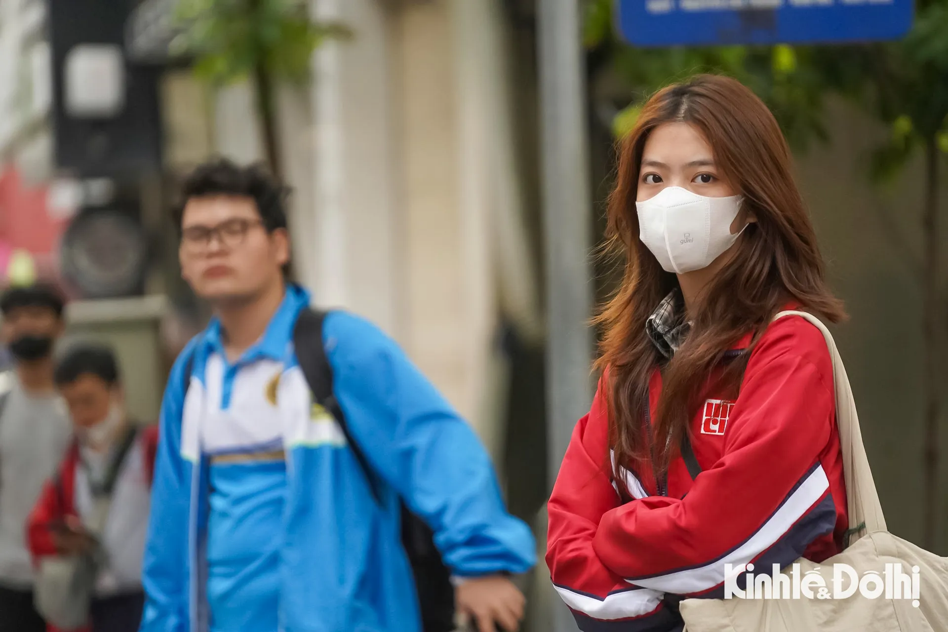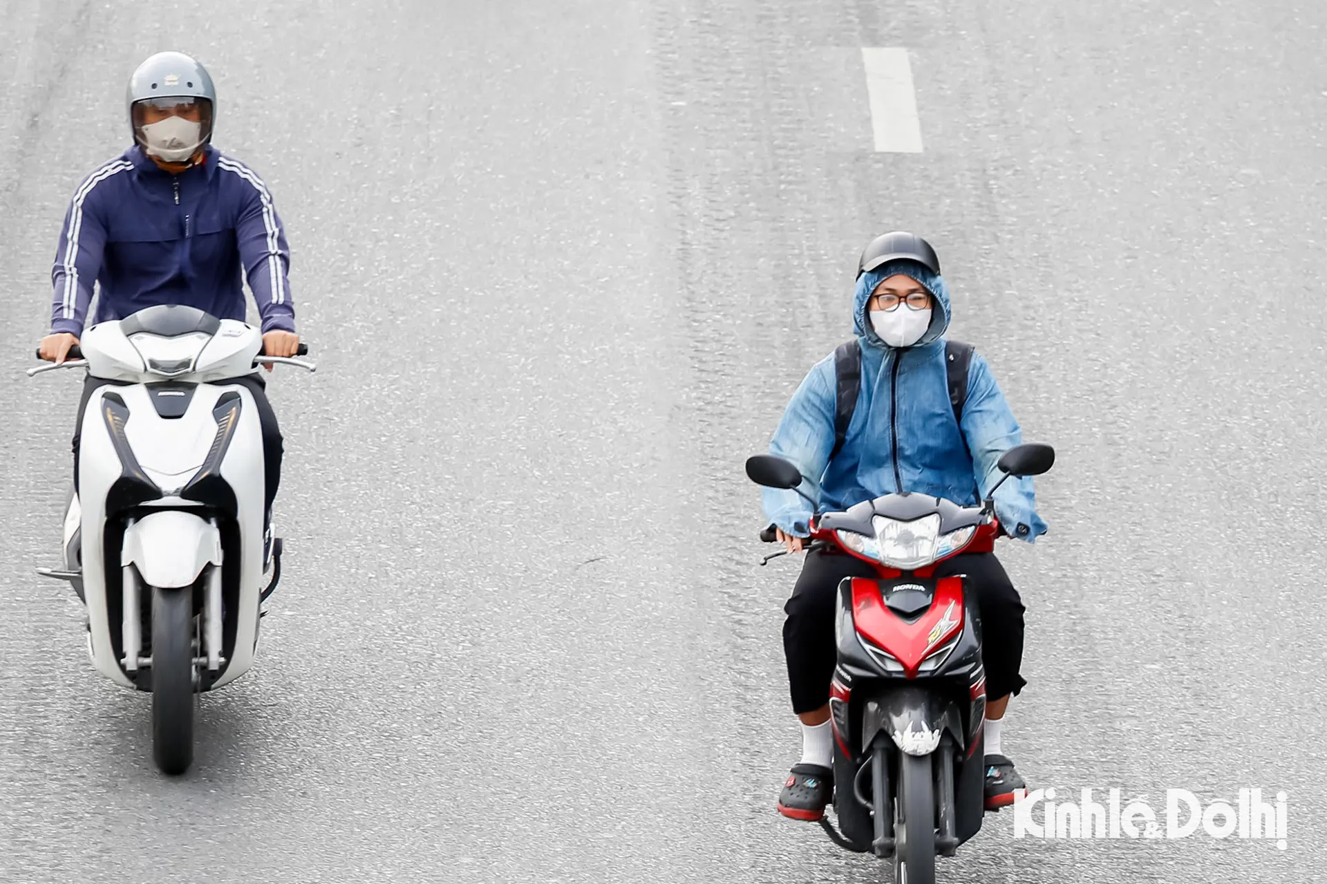 Nhiều người dân cảm nhận không khí se lạnh rõ rệt khi di chuyển ngoài đường.