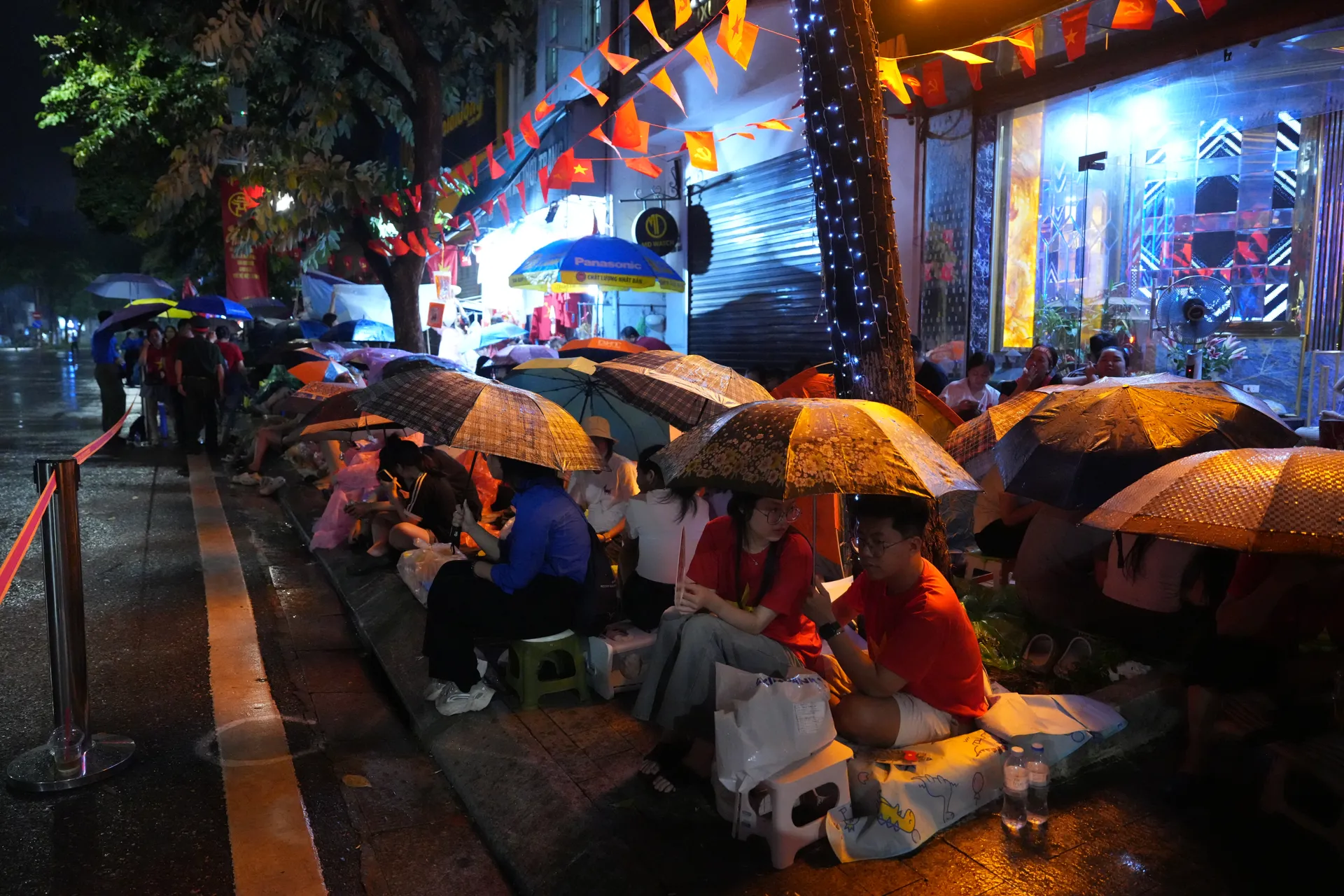 Kinhtedothi - Mặc dù buổi tổng duyệt diễu binh, diễu hành tại khu vực Quảng trường Ba Đình, Hà Nội diễn ra vào 6h30 sáng 30/8, nhưng từ khuya ngày 29/8 rạng sáng 30/8, đông đảo người dân đã tập trung tại các tuyến phố các khối diễu binh, diễu hành đi qua như Trần Phú, Hùng Vương, Kim Mã… để giữ chỗ, chờ theo dõi sự kiện này. Nhiều người mang theo lều bạt, ô dù và túi ngủ để qua đêm ngoài trời bất chấp thời tiết có mưa...