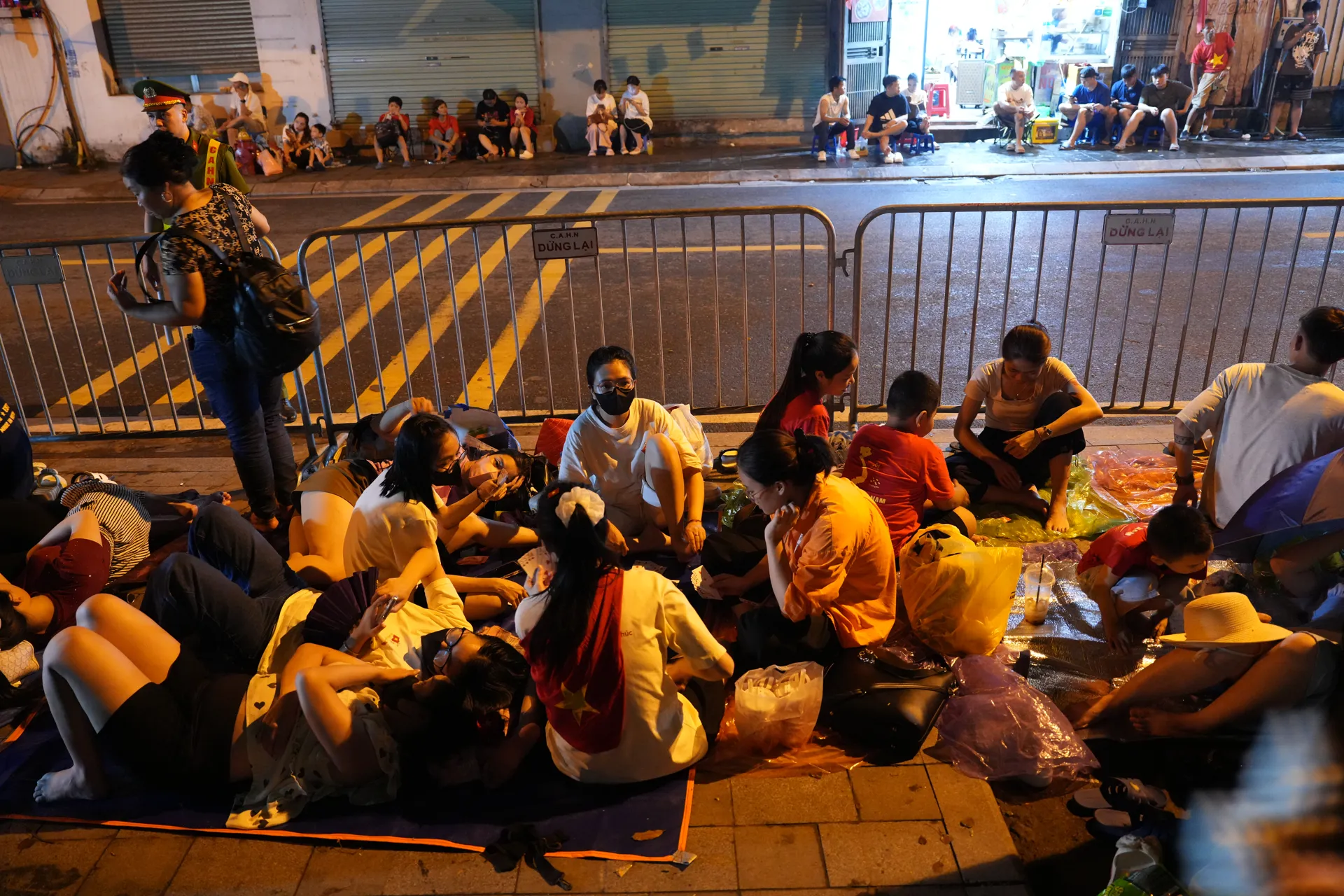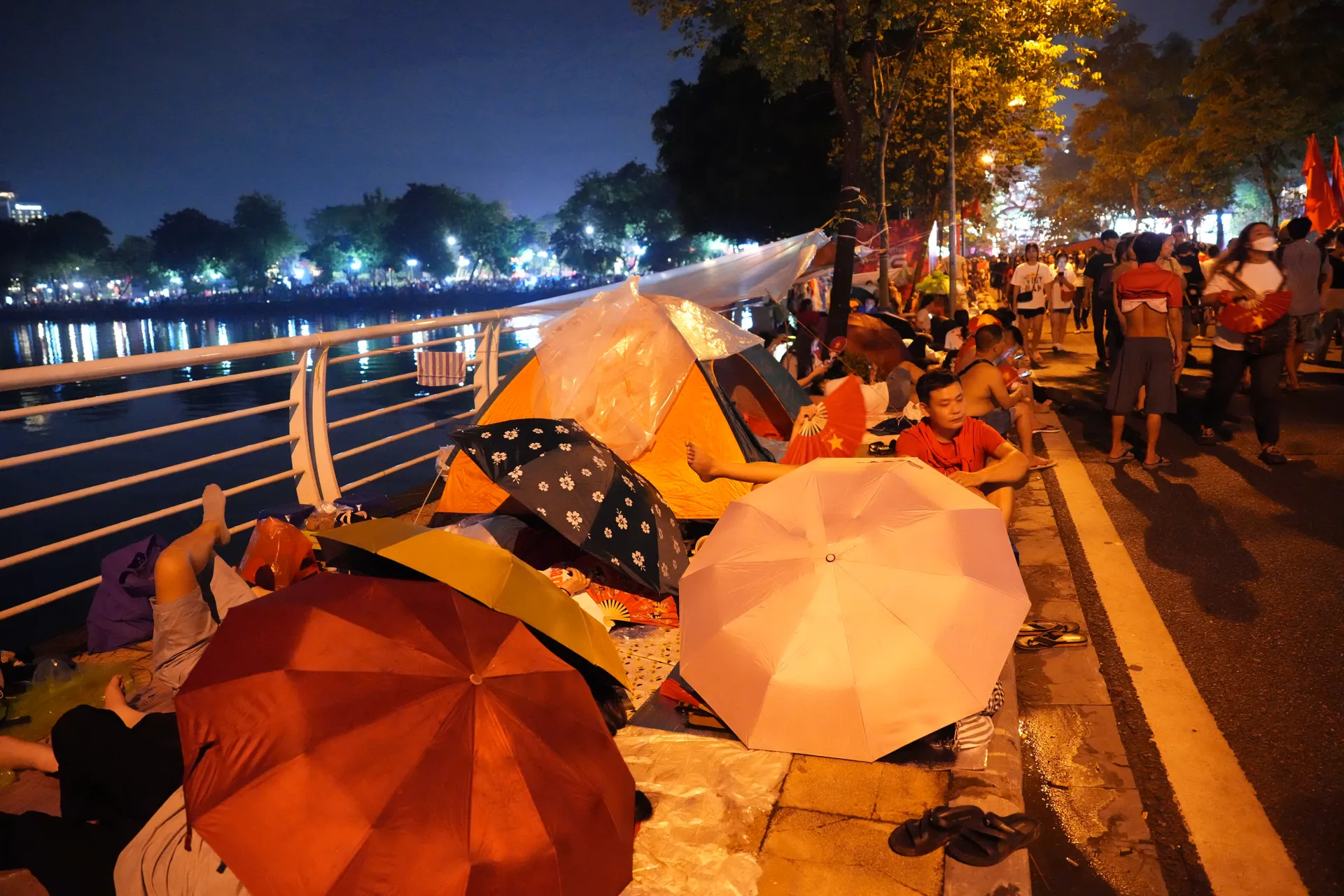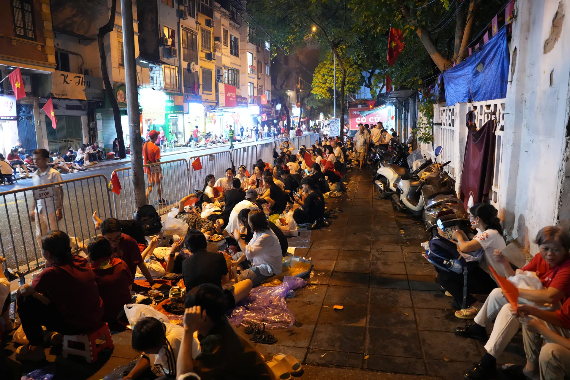 Người dân trải bạt, căng ô qua đêm chờ đón lễ diễu binh, diễu hành