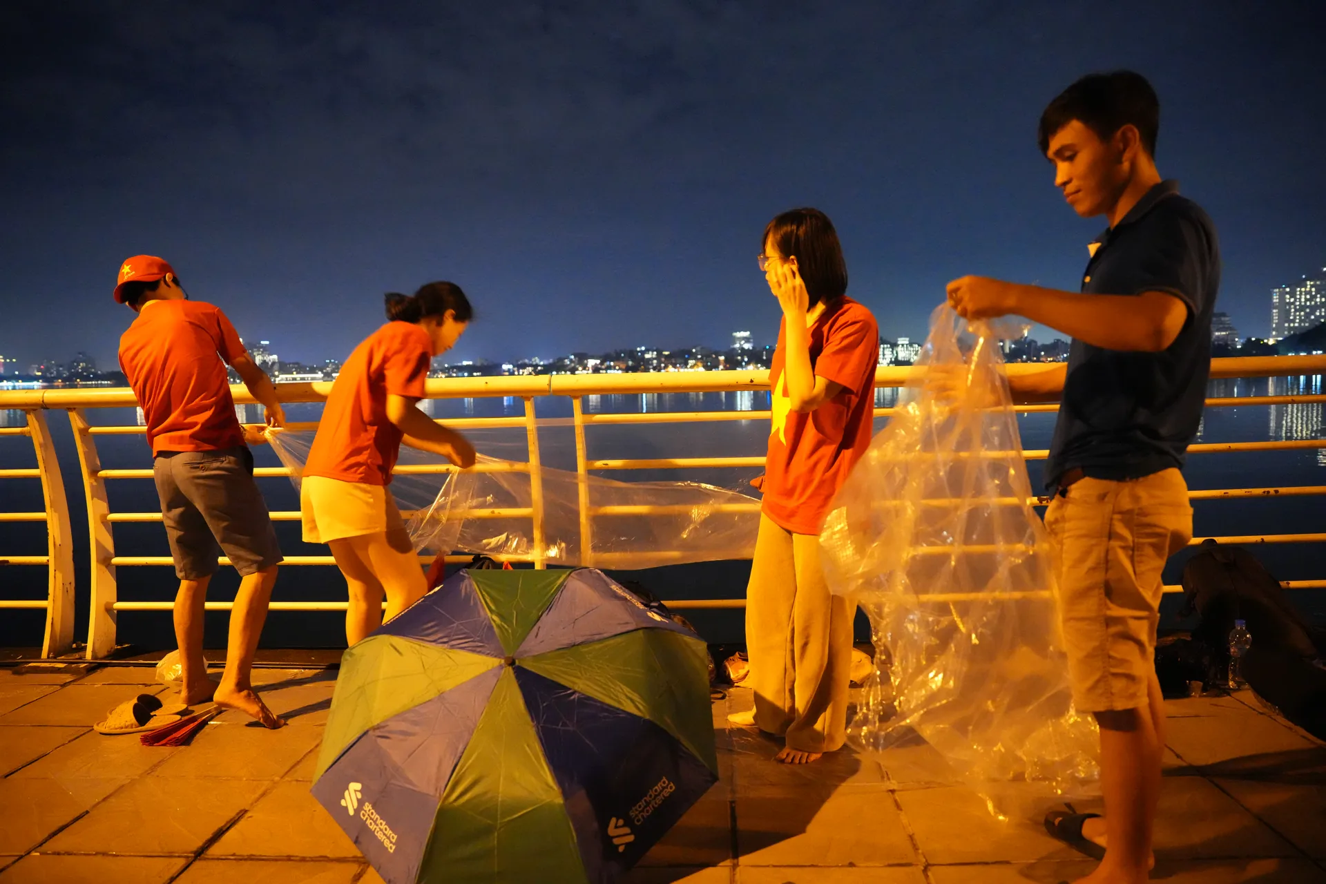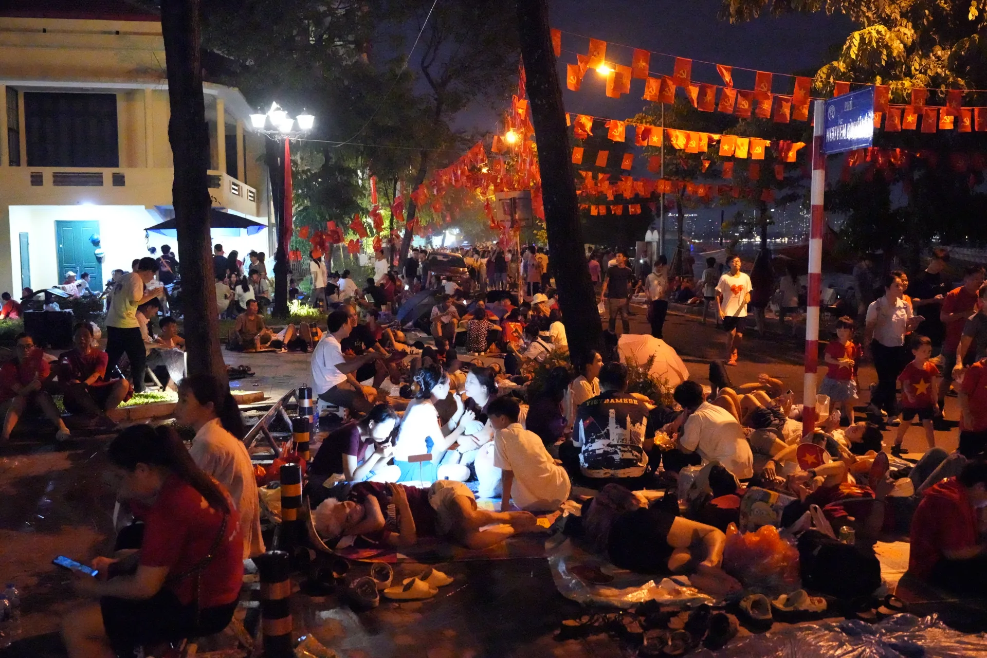 Kinhtedothi - Tối 1/9, người dân từ khắp nơi đã đổ về khu vực xung quanh Quảng trường Ba Đình trải bạt, che ô giữ chỗ xem diễu binh, diễu hành.
