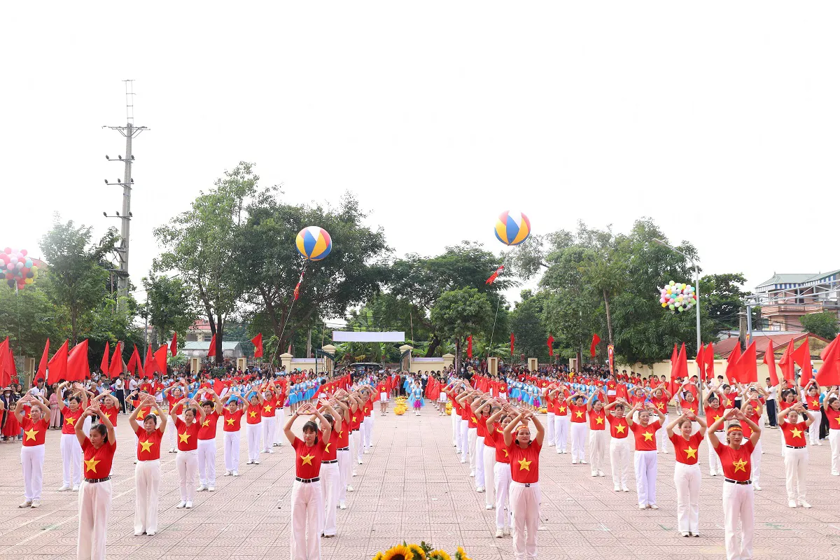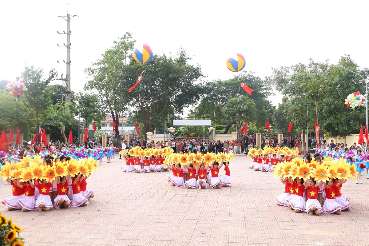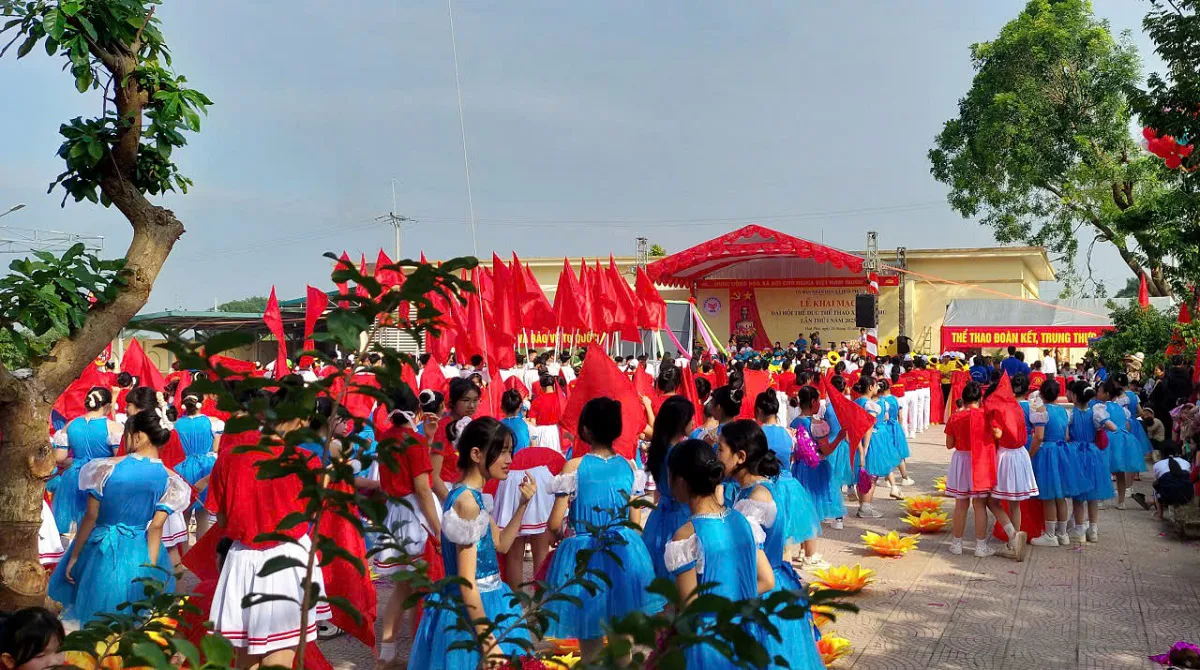 Đồng diễn của học sinh trường THCS Hòa Chính tại Đại hội TDTT xã Hòa Phú