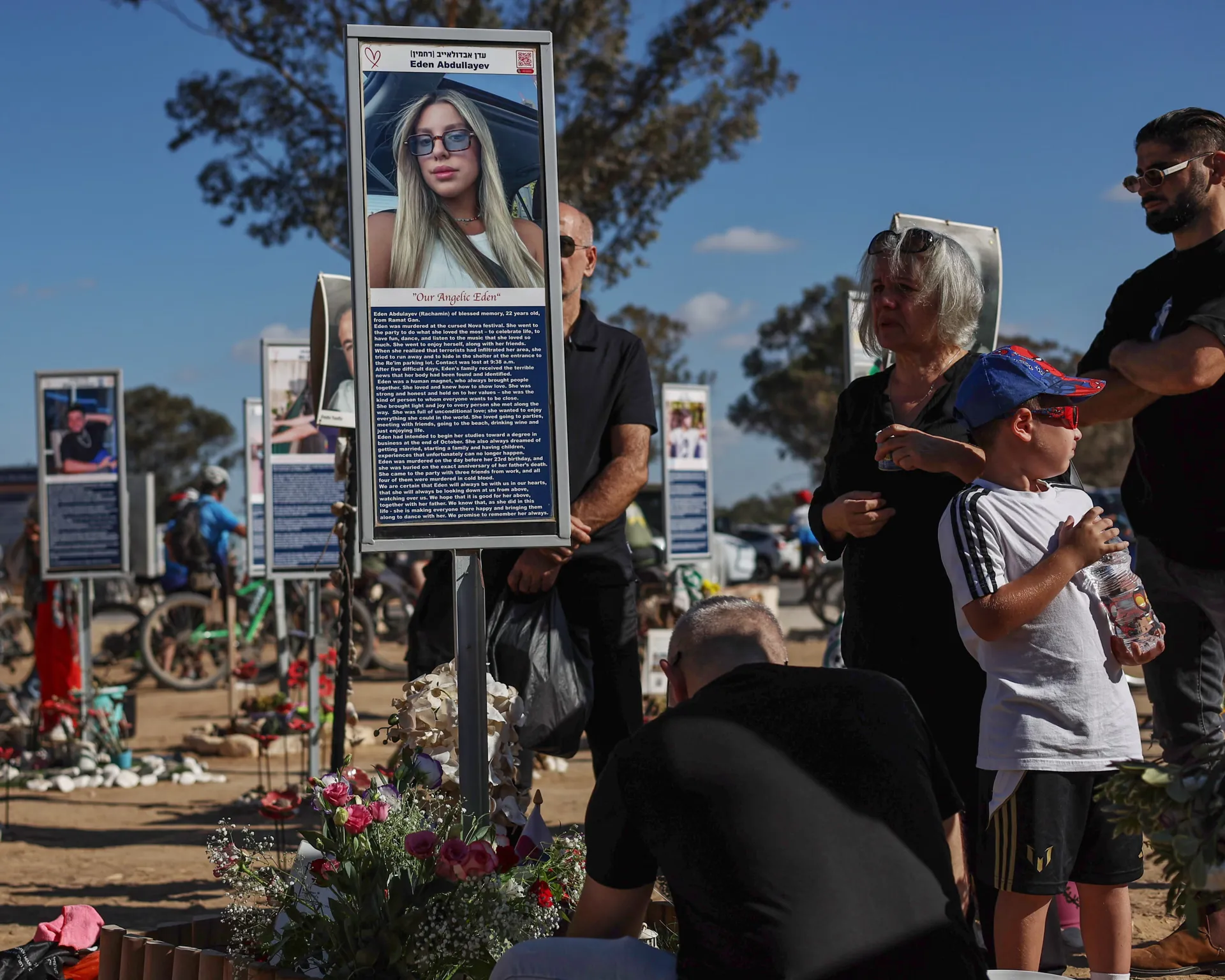 Cách đó không xa, tại xã Re'im, nơi gần 400 người Israel thiệt mạng và hàng chục người bị bắt cóc sau cuộc tấn công kinh hoàng của Hamas vào đại nhạc hội Nova, các gia đình nạn nhân trở lại vào lúc bình minh. Họ treo chân dung những người bị bắt cóc và hy sinh trên cờ Israel, và dự định dựng một lều tạm tại chỗ để tôn vinh lễ hội Do Thái Sukkot trùng với ngày tưởng niệm.