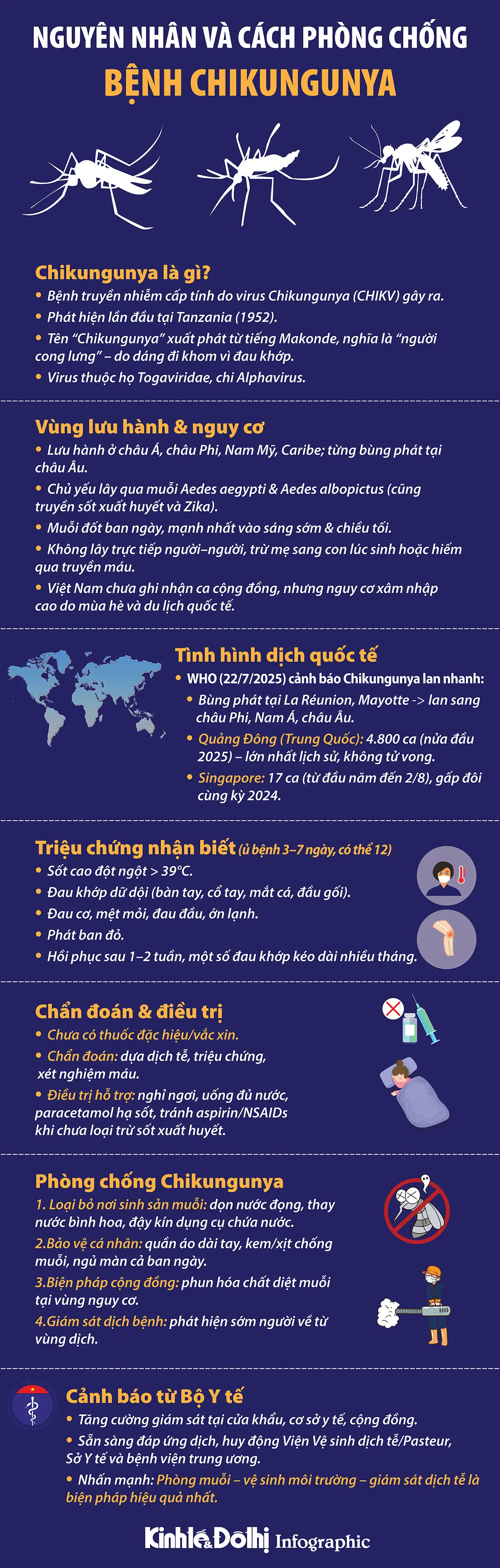 Kinhtedothi - Chikungunya là bệnh gì, Chikungunya bắt nguồn từ đâu, Chikungunya có nguy hiểm không, nguyên nhân và cách phòng chống đang là một trong những nội dung được nhiều người quan tâm thời gian gần đây.