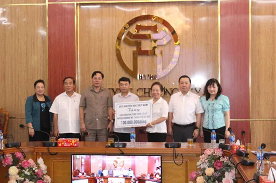 Chia sẻ khó khăn với huyện Chương Mỹ và các thầy cô giáo, các em học sinh vùng lũ, Chủ tịch T.Ư Hội khuyến học Việt Nam Nguyễn Thị Doan đã trao tặng 100 triệu đồng cho Hội khuyến học huyện Chương Mỹ để chuyển tới các thầy cô giáo và các em học sinh vùng lũ. Đồng thời cùng với Thượng tọa Thích Trường Xuân trao tặng 50 triệu đồng và 20 chiếc xe đạp cho các em học sinh khó khăn vùng lũ lụt của huyện.