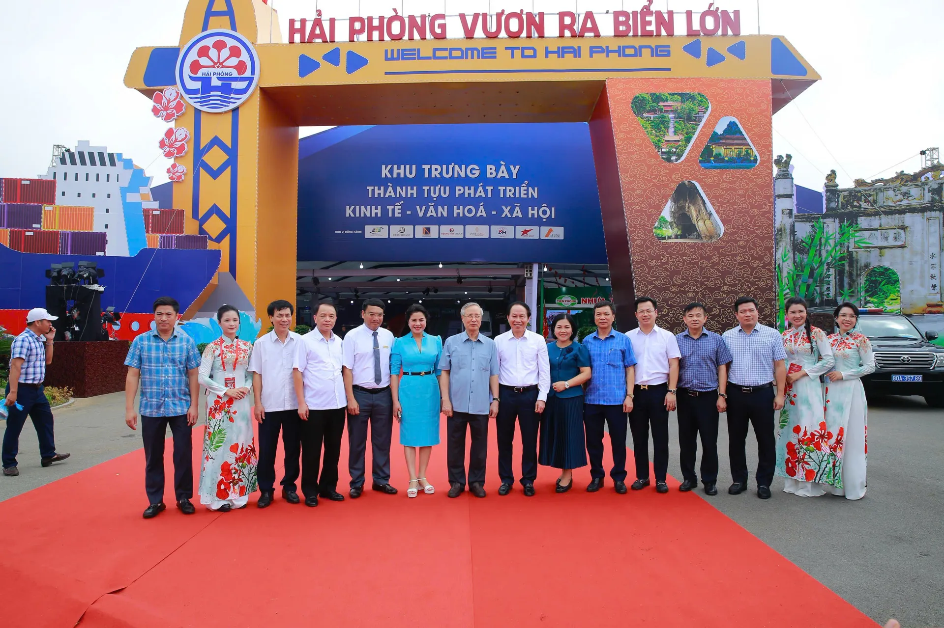 Khu vực trưng bày ngoài trời của Hải Phòng tạo ấn tượng với thông điệp “Hải Phòng vươn ra biển lớn”.