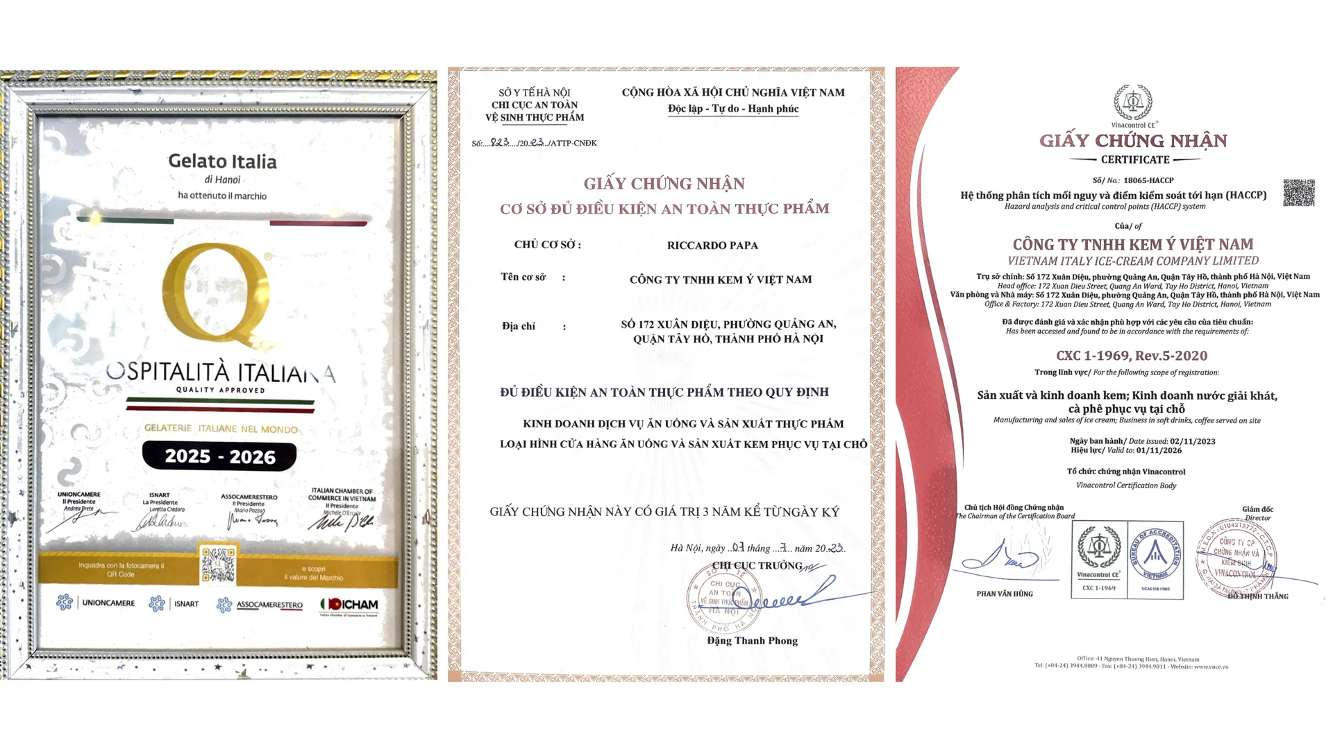 Gelato Italia hiện là một trong số ít đơn vị trong nước đạt đồng thời: