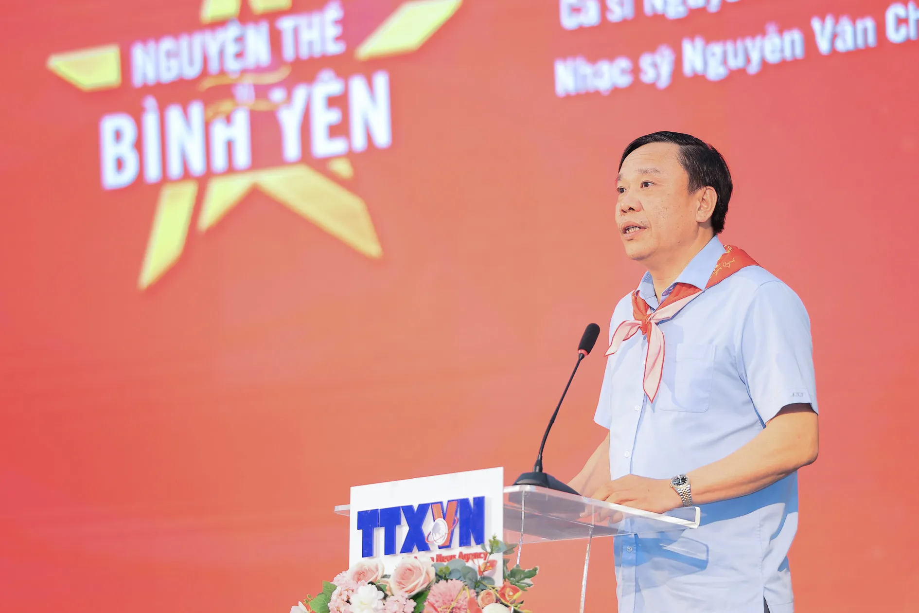 Nguồn cảm hứng của ca khúc "Nguyện thề vì bình yên" đến trong nắng lửa tháng Tư, giữa những ngày tập luyện gấp rút của các đơn vị tham gia đội hình diễu binh A50. Sau các chuyến biểu diễn, giao lưu tại thao trường, nhạc sĩ Nguyễn Văn Chung có dịp quan sát rất gần những giờ học, buổi tập bắn, tập võ, những bước chân điều lệnh đều tăm tắp. Ở đó, anh bắt gặp sự tập trung, những giọt mồ hôi kiên trì và niềm tự hào lặng thầm trên gương mặt người chiến sĩ trẻ. Những chi tiết đời thường ấy, không cầu kỳ, không phông nền, nhưng đủ để đánh thức mạch cảm xúc và thôi thúc người nghệ sĩ cầm bút.