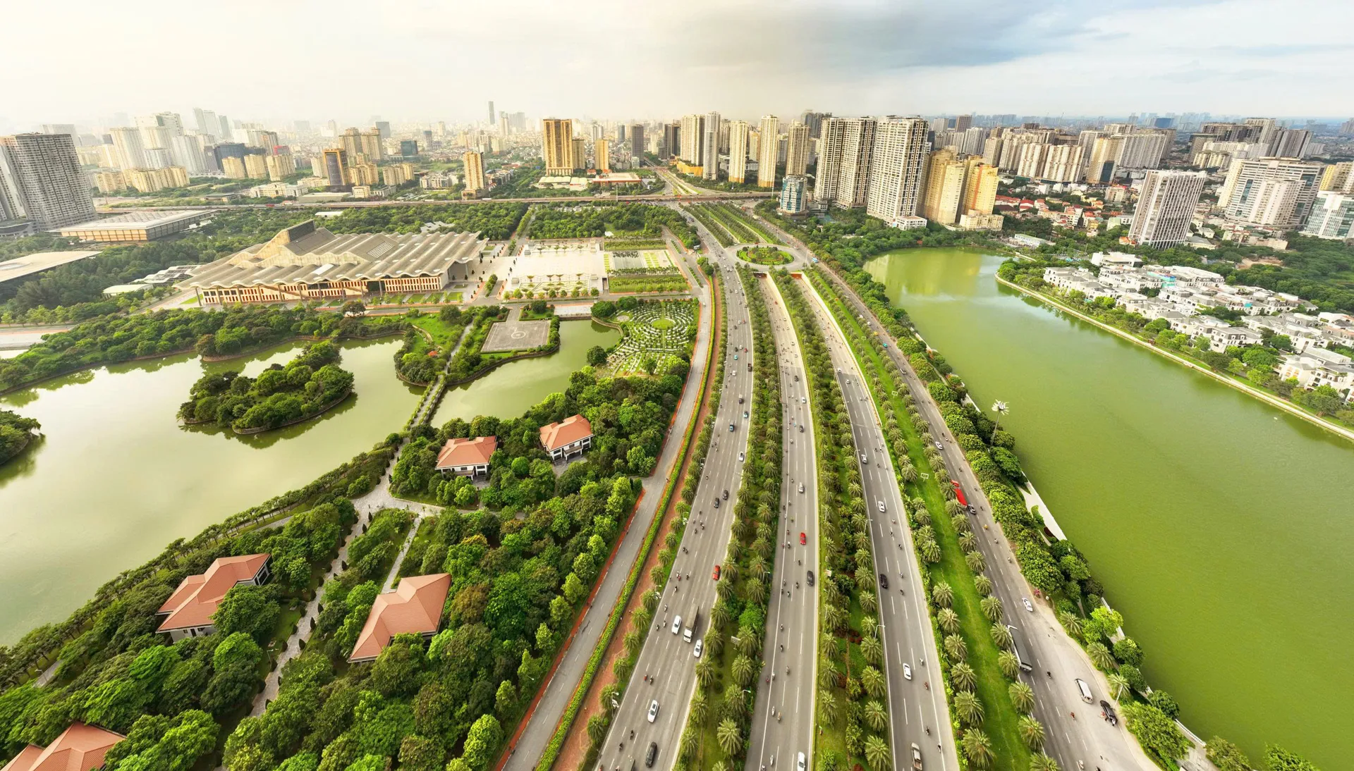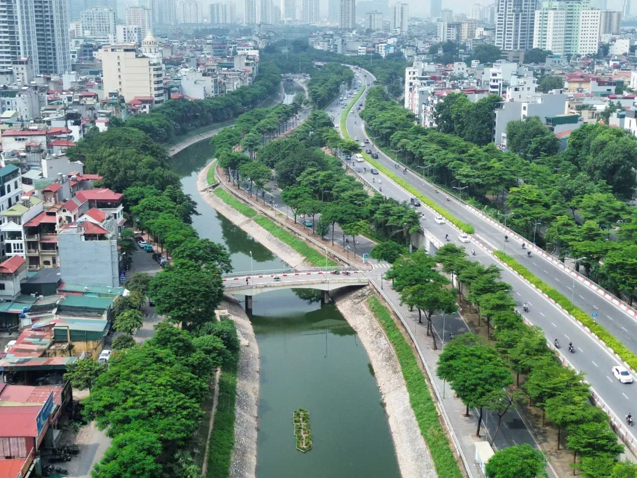 Sông Tô Lịch sau cải tạo nhìn từ trên cao. Ảnh: Phạm Hùng