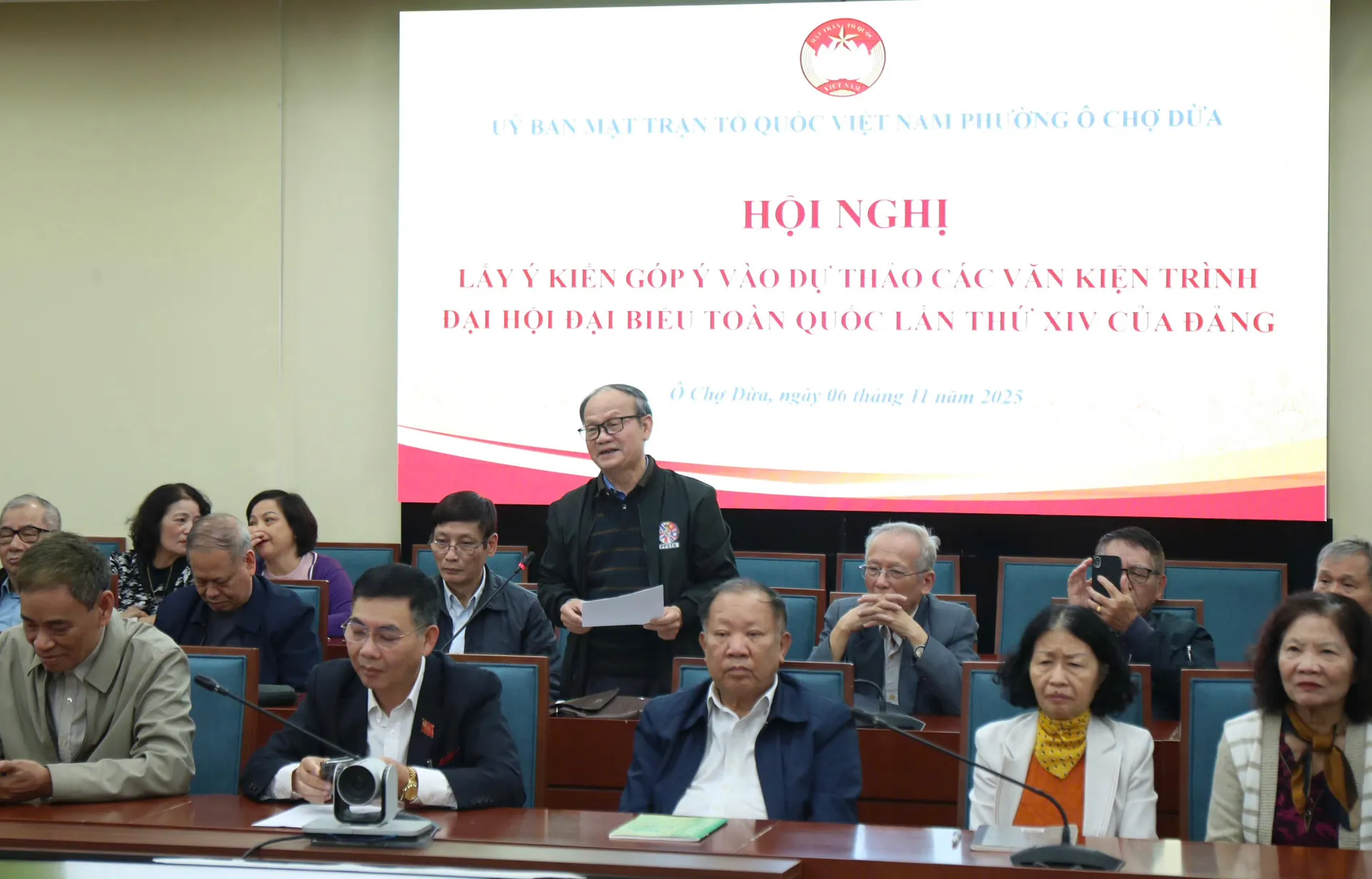 Kinhtedothi - Sáng 6/11, Ủy ban MTTQ Việt Nam phường Ô Chợ Dừa tổ chức Hội nghị lấy ý kiến góp ý vào dự thảo các văn kiện trình Đại hội đại biểu toàn quốc lần thứ XIV của Đảng.