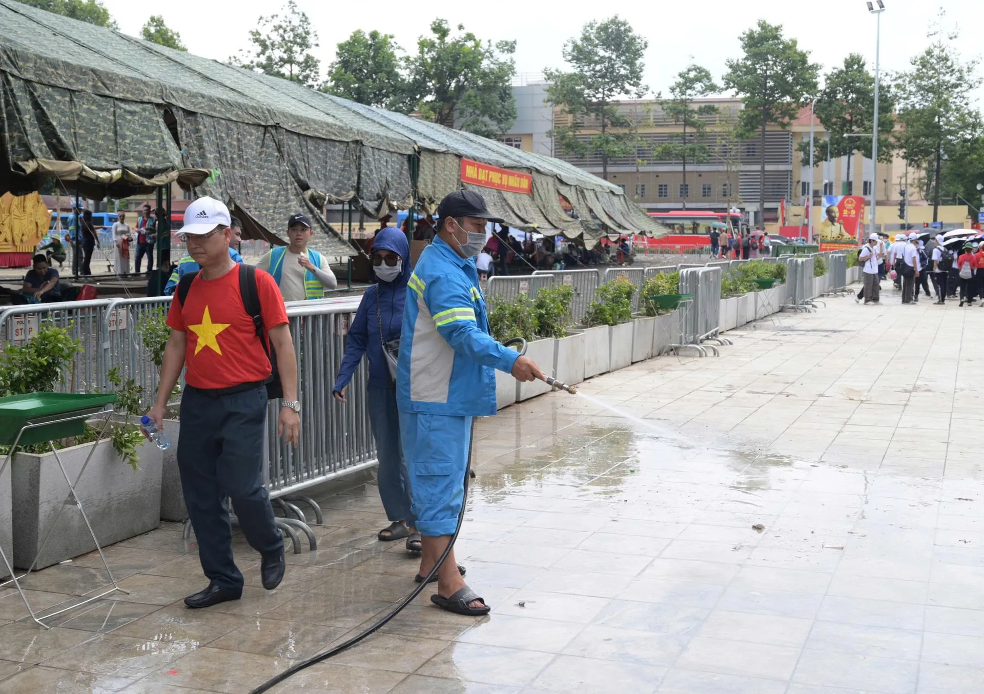 Âm thầm quét dọn giữa dòng người nô nức là những công nhân môi trường của Urenco.