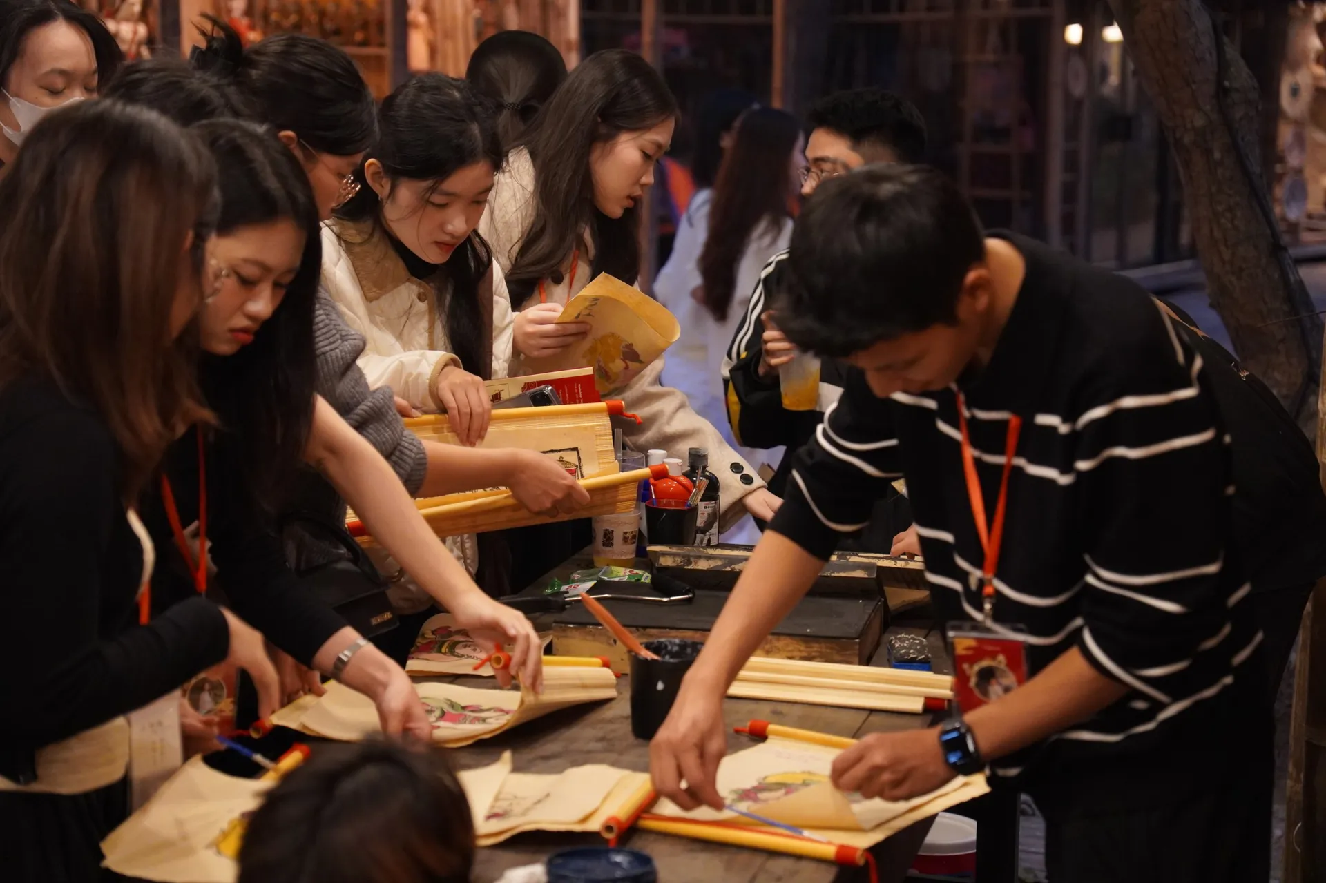 Giới trẻ hào hứng tham gia trải nghiệm và tìm hiểu về tranh Đông Hồ.