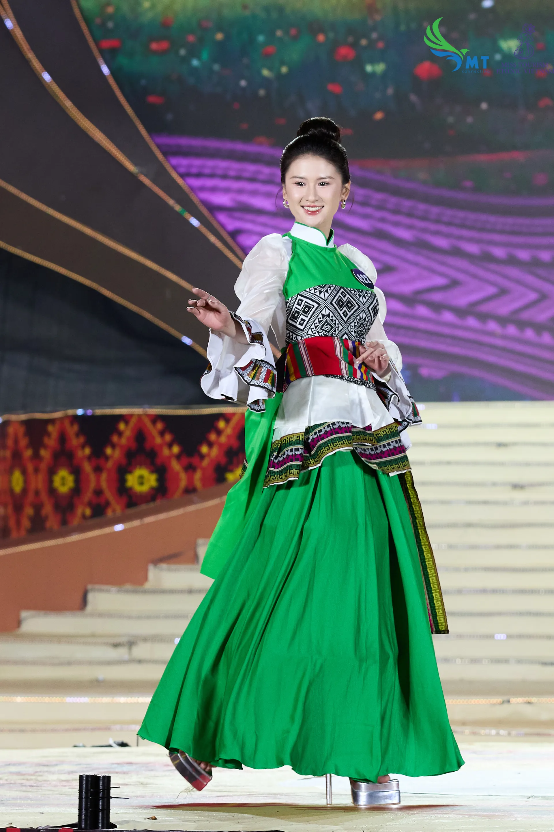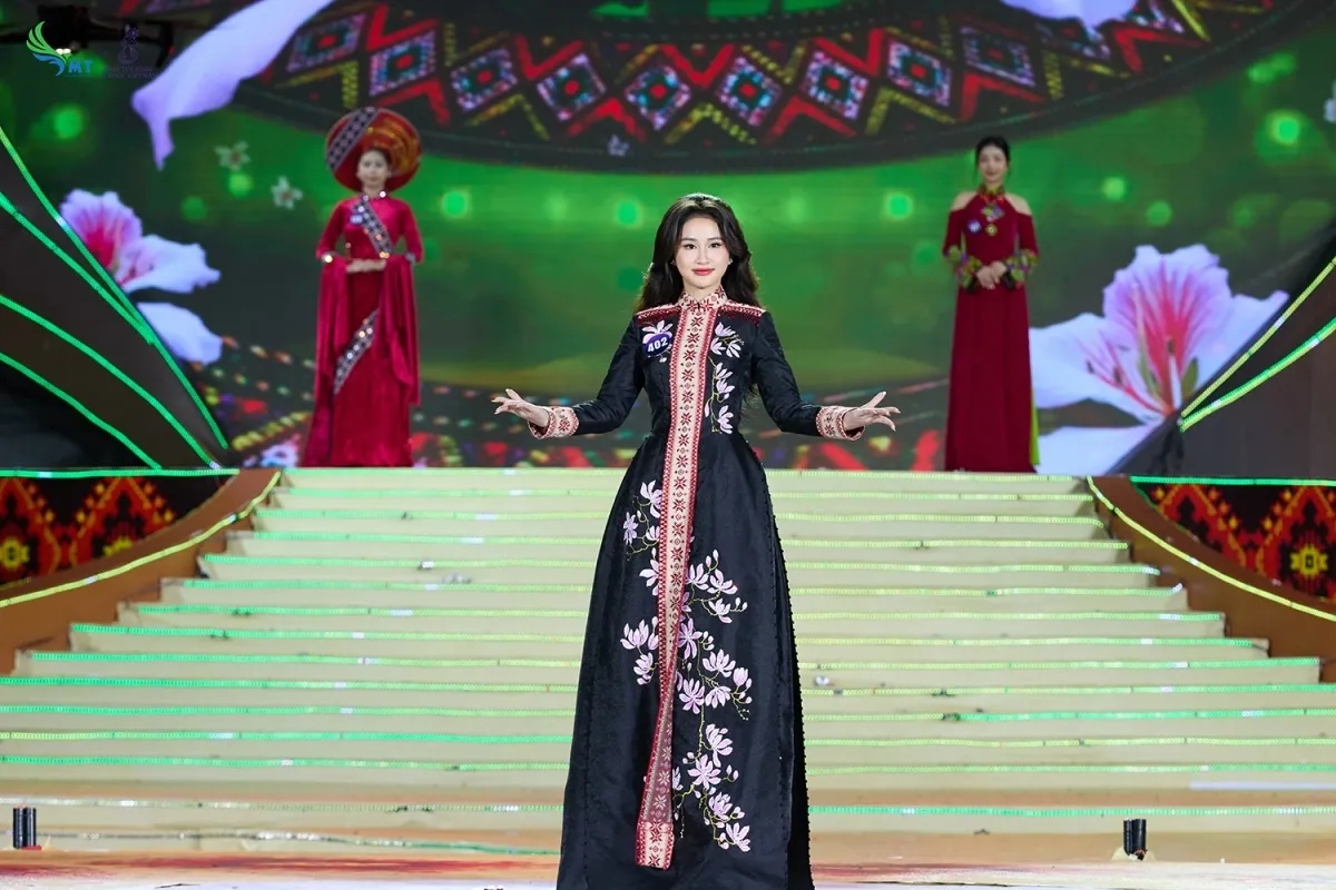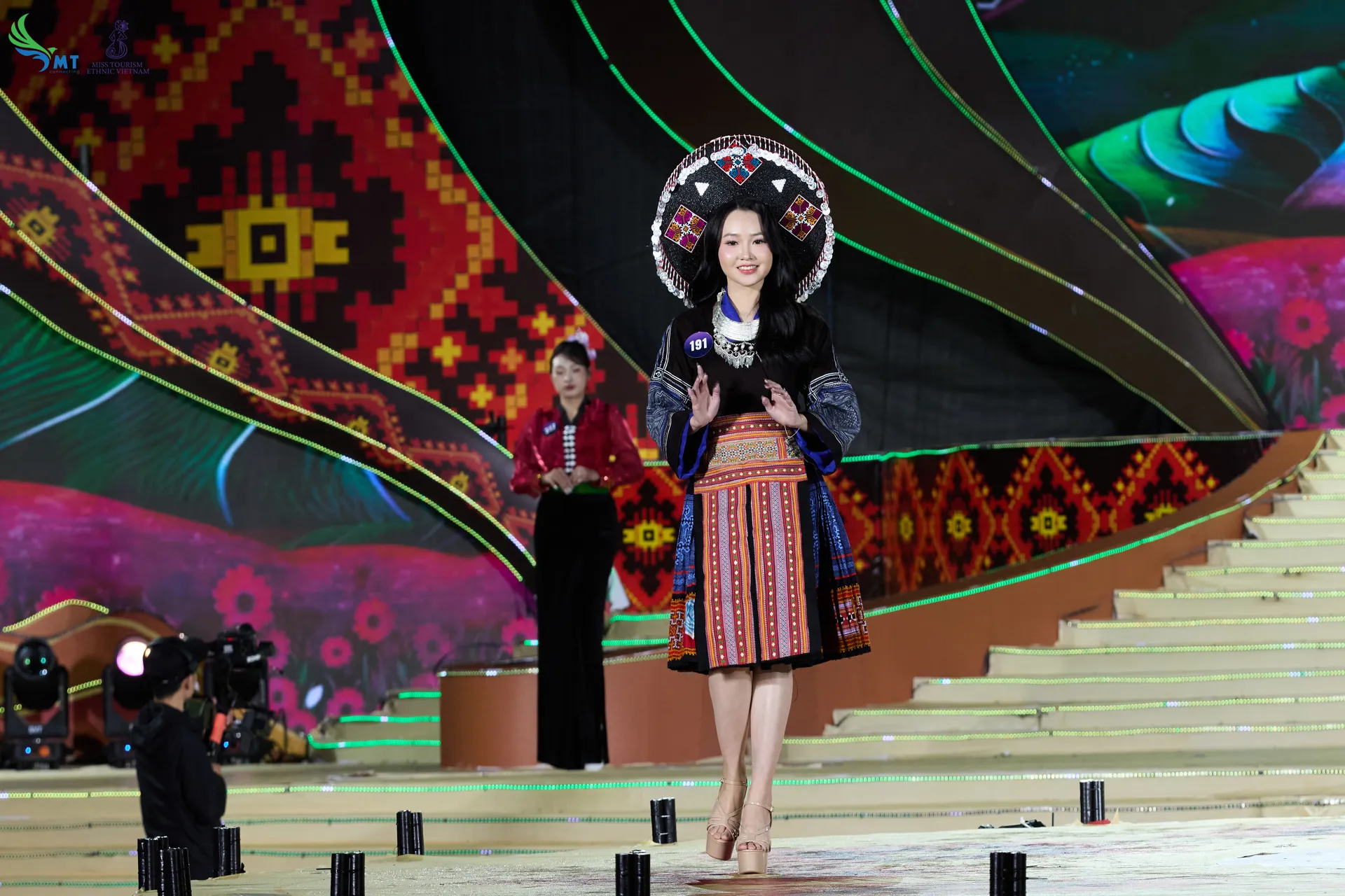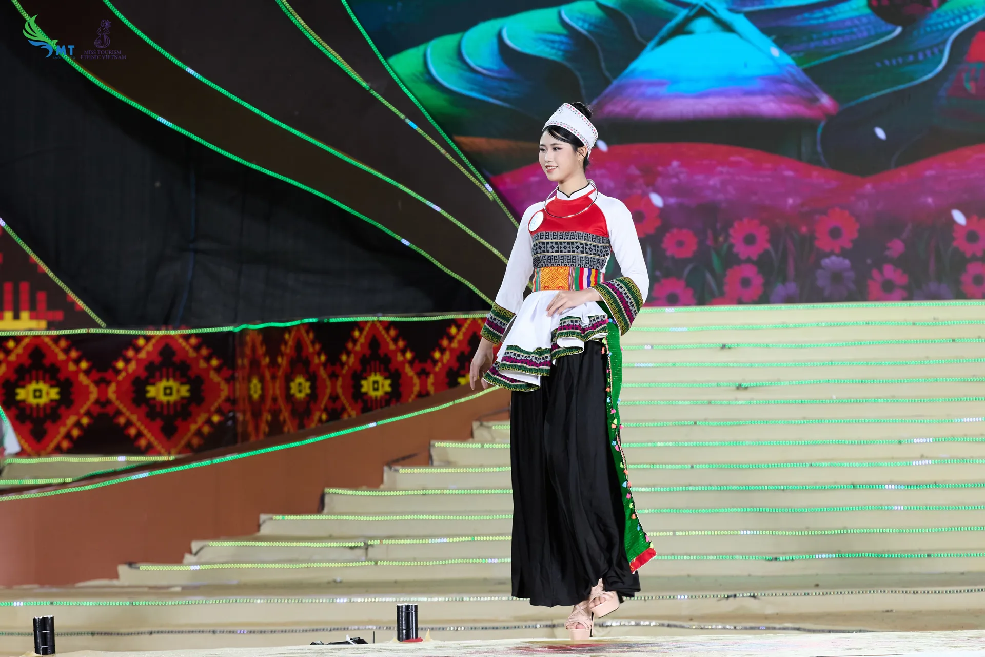 Ở phần thi đầu tiên, các thí sinh khoác lên mình tà áo dài đất Việt kết hợp cùng những bản sắc văn hóa các dân tộc vùng cao như những đường dệt, hoa văn, đặc biệt là chất liệu di sản thổ cẩm... trong bộ sưu tập “Sắc màu thổ cẩm” của nhà thiết kế Cao Thu Vân. Mỗi bộ trang phục trong bộ sưu tập là một tác phẩm nghệ thuật kể về văn hóa, thiên nhiên và truyền thống phong phú của các dân tộc. Các người đẹp thể hiện trọn vẹn sự duyên dáng, e ấp nhưng không kém phần rạng rỡ và hiện đại khi khoác lên mình bộ áo dài truyền thống. Qua đó, các thí sinh có dịp lan tỏa niềm tự hào về trang phục truyền thống, khẳng định vai trò của áo dài trong việc quảng bá hình ảnh đất nước và du lịch Việt Nam đến bạn bè quốc tế.