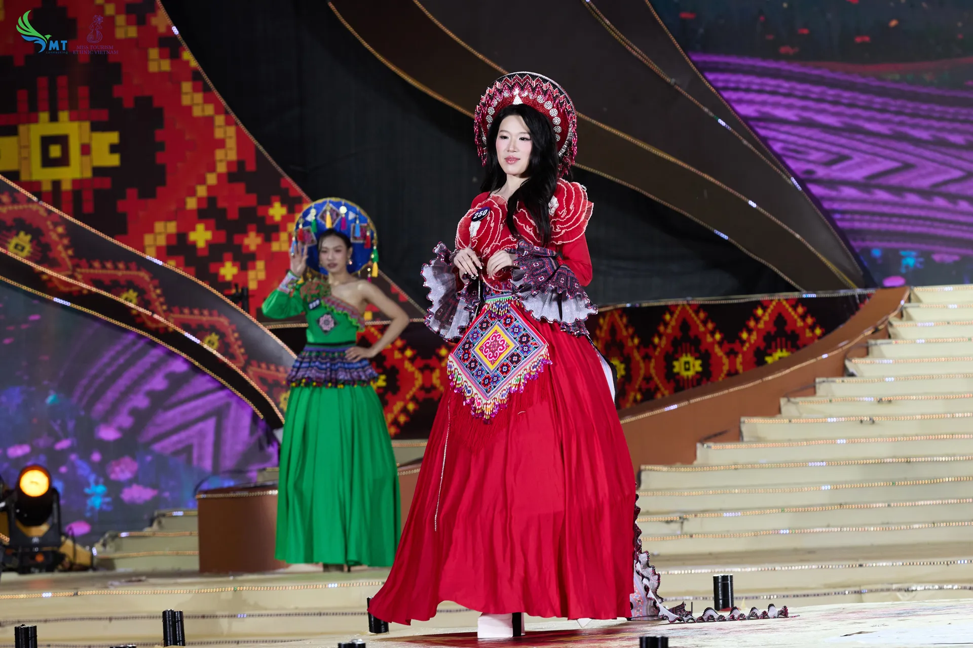 Sân khấu đêm chung kết được thiết kế hiện đại, lấy cảm hứng từ chiếc khăn Piêu, hoa ban và vẻ đẹp núi rừng Tây Bắc, kết hợp hoa văn thổ cẩm và hoa đào, với hệ thống ánh sáng chuyển động tinh tế. Từng chi tiết, từ vị trí chỗ ngồi khán giả, lối di chuyển của thí sinh đến hệ thống camera trực tiếp, đều được tính toán kỹ lưỡng, thể hiện sự chuyên nghiệp của Ban tổ chức.