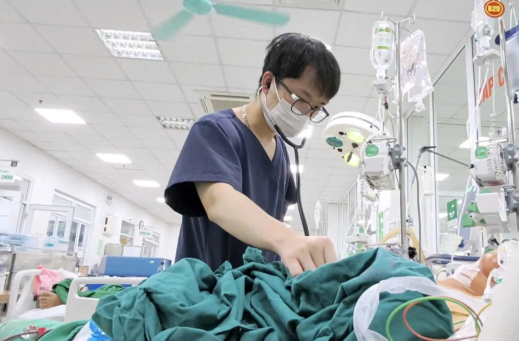 Bác sĩ Phan Văn Mạnh - Khoa Cấp cứu, BV Bệnh Nhiệt đới T.Ư cho biết, bệnh nhân nhập viện trong tình trạng vàng mắt vàng da, nôn máu, thiếu máu nặng, sốc, toan chuyển hóa và suy đa tạng (suy thận, suy gan, suy tim), rối loạn đông máu. Bệnh nhân được chẩn đoán nhiễm Leptospira thể nặng (còn được gọi là bệnh Weil), tiên lượng tử vong rất cao. Người bệnh được xử trí nội soi dạ dày cấp cứu để cầm máu và truyền cấp các chế phẩm máu, đồng thời can thiệp hồi sức tích cực bằng đặt ống thở nội khí quản thở máy và lọc máu.