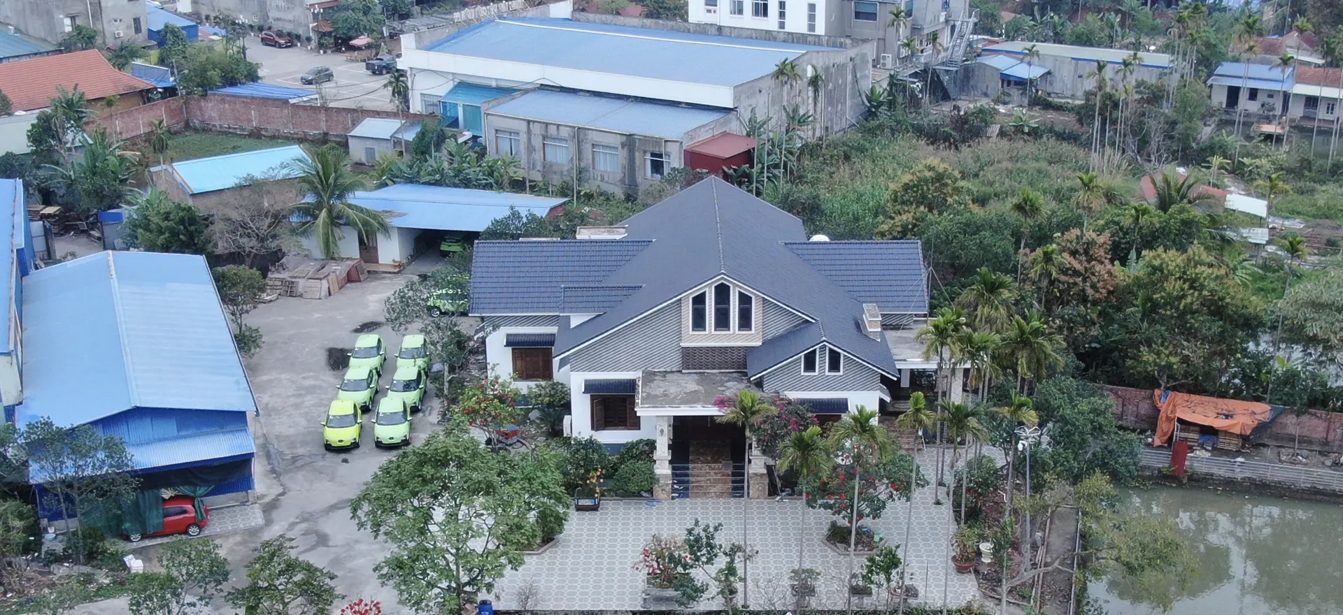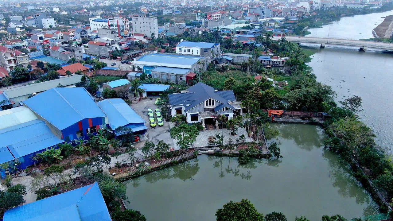 Các công trình xây trên đất nông nghiệp của hộ ông Đỗ Văn Viện gồm: 1 căn biệt thự mái thái, ao, nhiều công trình xưởng sửa chữa ô tô mặt tiền ngay cạnh trung tâm TP. Việc ông Viện tự ý nhận chuyển nhượng đất nông nghiệp, sau đó san lấp dần đã diễn ra từ năm 2017 đến nay nhưng không bị phát hiện, xử lý.