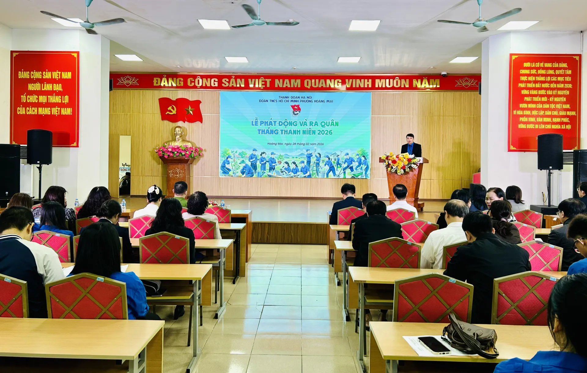 Đoàn TNCS Hồ Chí Minh phường Hoàng Mai tổ chức Lễ phát động và ra quân Tháng Thanh niên năm 2026. Ảnh: Trần Oanh