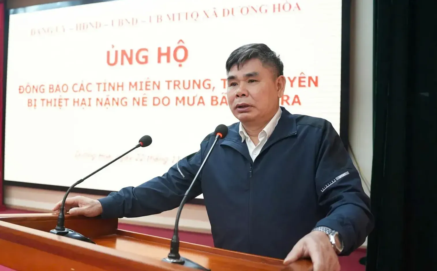 Chủ tịch MTTQ Việt Nam xã Dương Hòa Nguyễn Văn Thuận phát động ủng hộ đồng bào Miền Trung, Tây Nguyên bị thiệt hại vì lũ lụt.